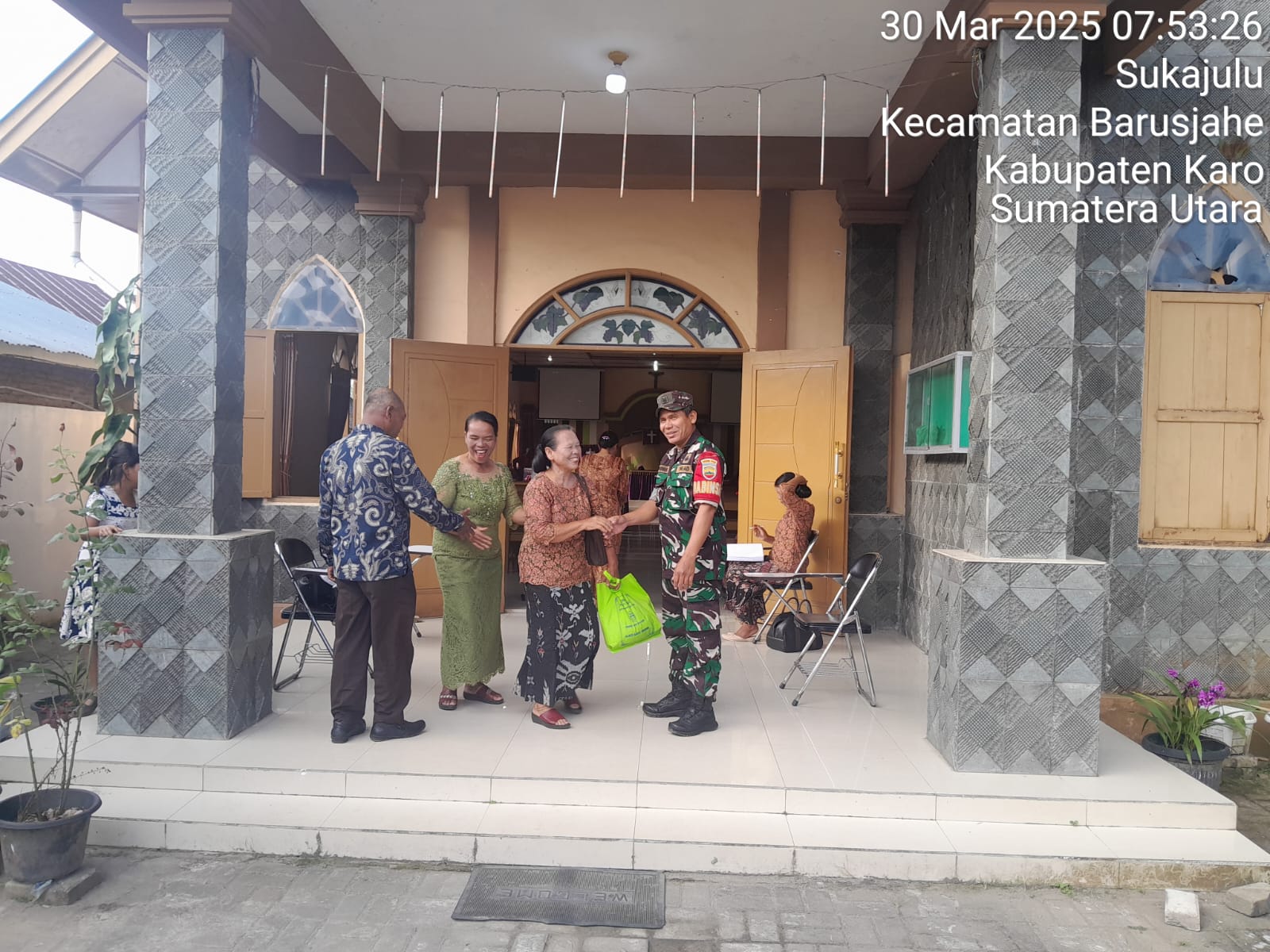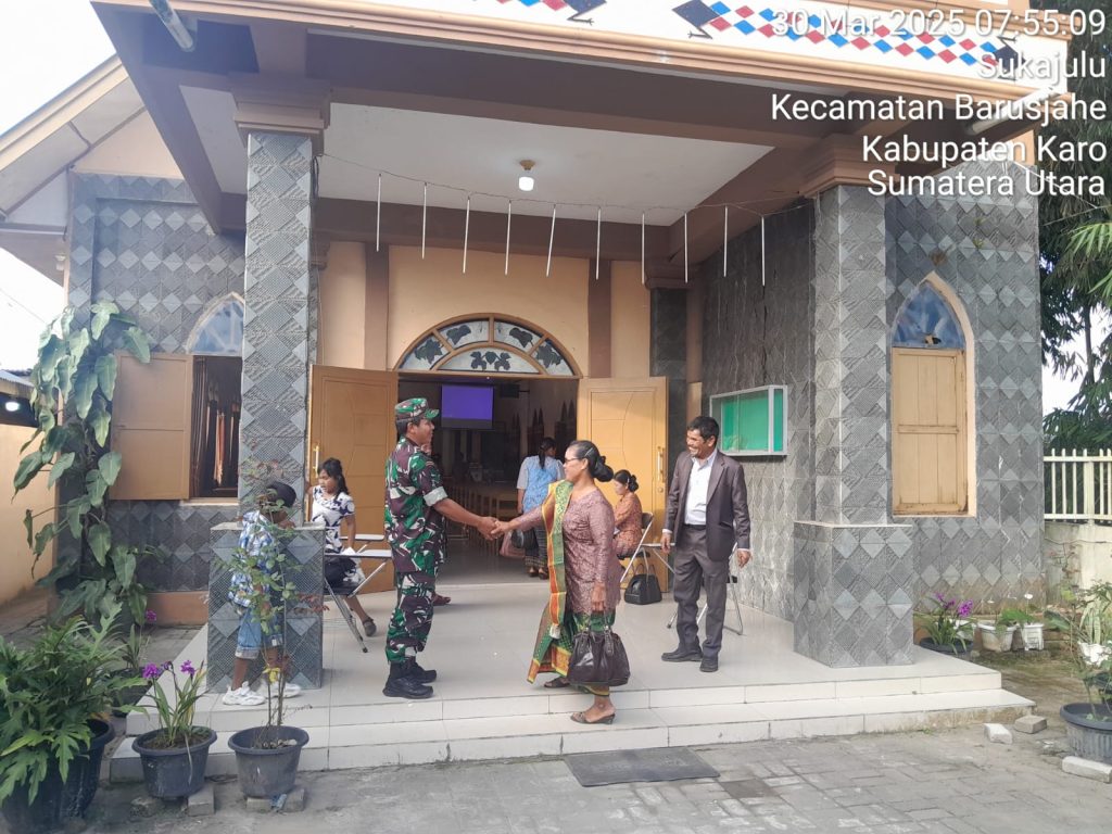Serka Anton Manurung juga sebagai Babinsa Koramil 01/Barusjahe pada hari minggu ini (30/03) melaksanakan Pawilbin dan Komsos besilaturahmi sambil menyampikan imbauan kepada warga agar menjaga kemanan dan ketertiban, menjaga kebersihan lingkungan serta membantu Majelis Gereja pada pelaksanaan Pengamanan Ibadah Kebaktian Minggu di GBKP (Gereja Batak Paro Protestan) Sukajulu Jalan Tigapanah-Tongkoh Desa Sukajulu Kecamatan Barusjahe Kabupaten Karo-Sumatera Utara.