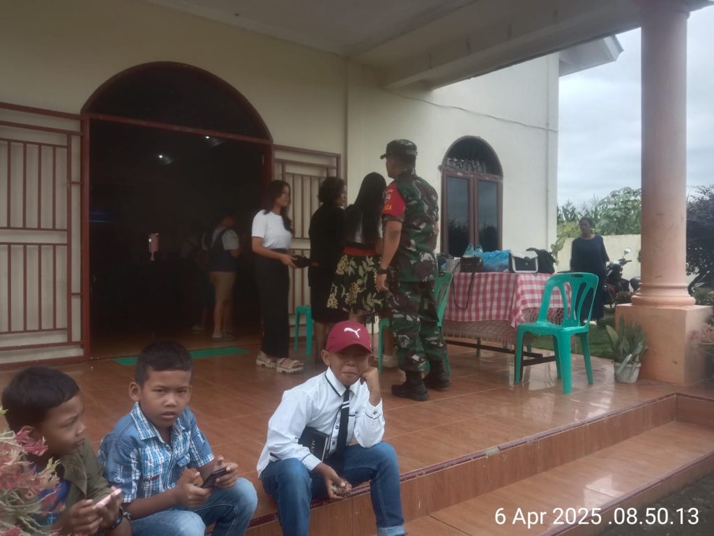 Tanah Karo. Minggu 06/04/2025. Perhatian dan kepeduli kepada warga di wilayah binaan selalu di berikan para Babinsa TNI AD, termasuk saat hari minggu mereka sambil melaksanakan Patroli Wilayah Binaan (Pawilbin) dan Komunikasi Sosial (Komsos) juga melaksanakaan ibadah kebaktian minggu, untuk menjaga kondusifnya desa binaan, begitu juga di wilayah binaan Koramil 08/Tigabinanga jajaran Kodim 0205/Tanah Karo tepatnya di Kecamatan Tigabinanga.