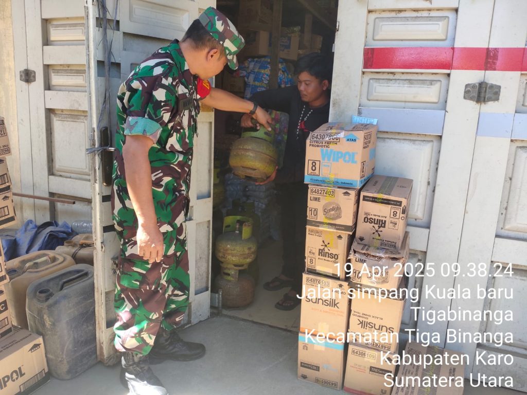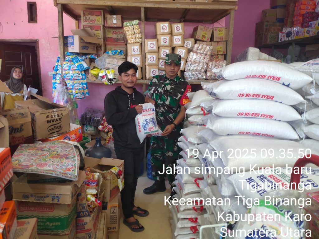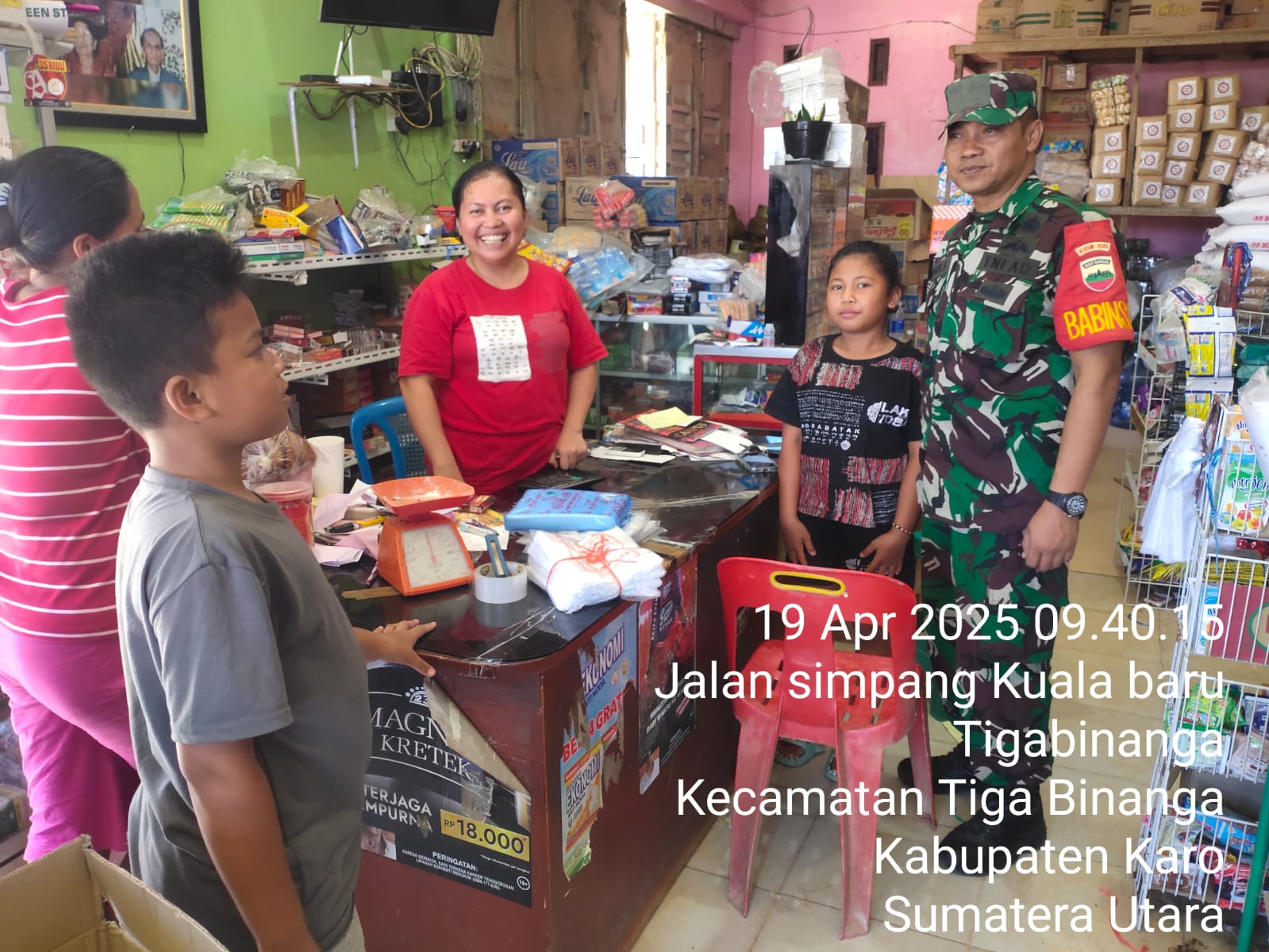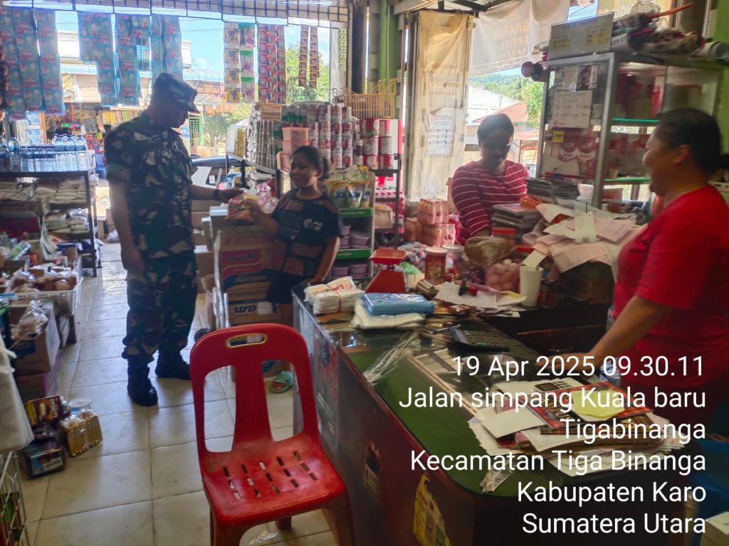 Tanah Karo. Sabtu 19/04/2025. Para Babinsa (Bintara Pembina Desa) di Koramil 08/Tigabinanga jajaran Kodim 0205/Tanah Karo diakhir pekan tetap melaksanakan Patroli Wilayah Binaan (Pawilbin) untuk menjaga kondusifnya wilayah binaan dan Komunikasi Sosial (Komsos) bersilatirahmi sambil monitoring harga dan ketersediaan bahan pangan terutama Sembilan Bahan Pokok kebutuhan masyarakat, juga kegiatan ini sesuai perintah dari Danramil Kapten Inf J.M.H. Tampubolon berdasarkan intruksi dari Komando Atas dalam rangkan pemenuhan kebutuhan bahan pangan di wilayah binaan.