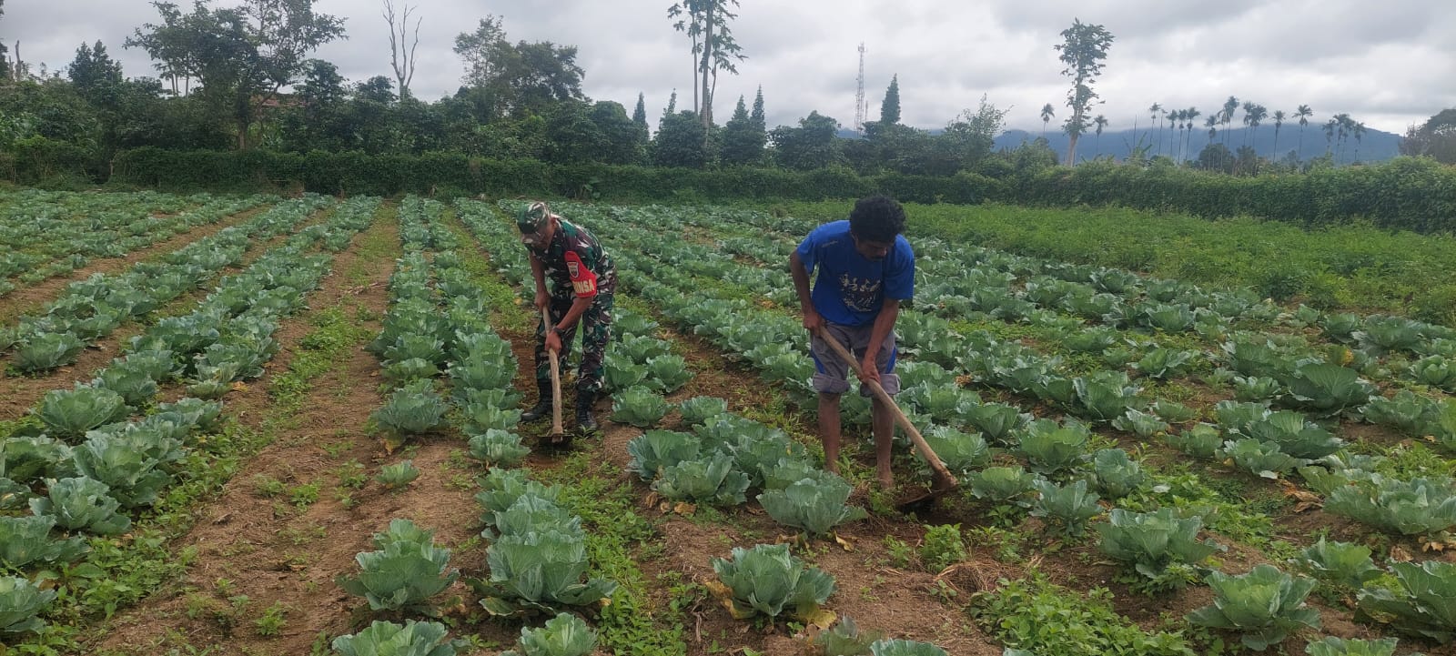 Dalam kegiatan ini Serka Reka Juli Rahmat mendampingi dan membantu Bapak Wagis Ginting merawat kol yaitu mengecek pertumbuhan tanaman dan membersihkan gulma atau tumbuhan pengganggu, serta Babinsa Komsos bersilaturahmi secara Humanis sambil berbincang menanyakan masalah atau kesulitan yang sedang dihadapi oleh para petani yaitu jatah pupuk bersubsidi yang diterima tidak sebanding dengan luas tanam. (Bayu W. Gatubima_Pendim 0205/TK WEB)
