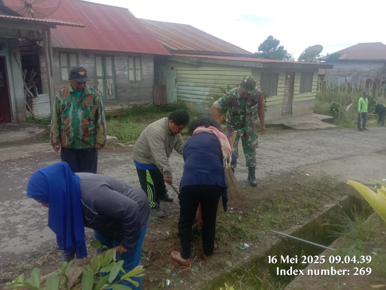 Tanah Karo. Jumat 16/05/2025. Babinsa Koramil Koramil 04/Simpang Empat jajaran Kodim 0205/Tanah Karo Serda Dedi Afrizal sesuai perintah Danramil Kapten Czi Menson Tarigan agar terus memberikan rasa peduli dan perhatian terhadap masyarakat dan lingkungan di wilayah binaan, oleh sebab itu para personel khusunya para Babinsanya pada hari ini (16/05) ikut melaksanakan gotong royong pembersihan jalan, selokan dan lingkungan sekitar Desa, kegiatan ini juga dilaksanakan di Desa Kutagugung Kecamatan Naman Teran Kabupaten Karo-Sumatera Utara.