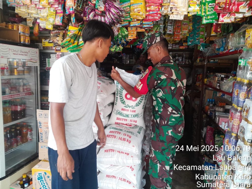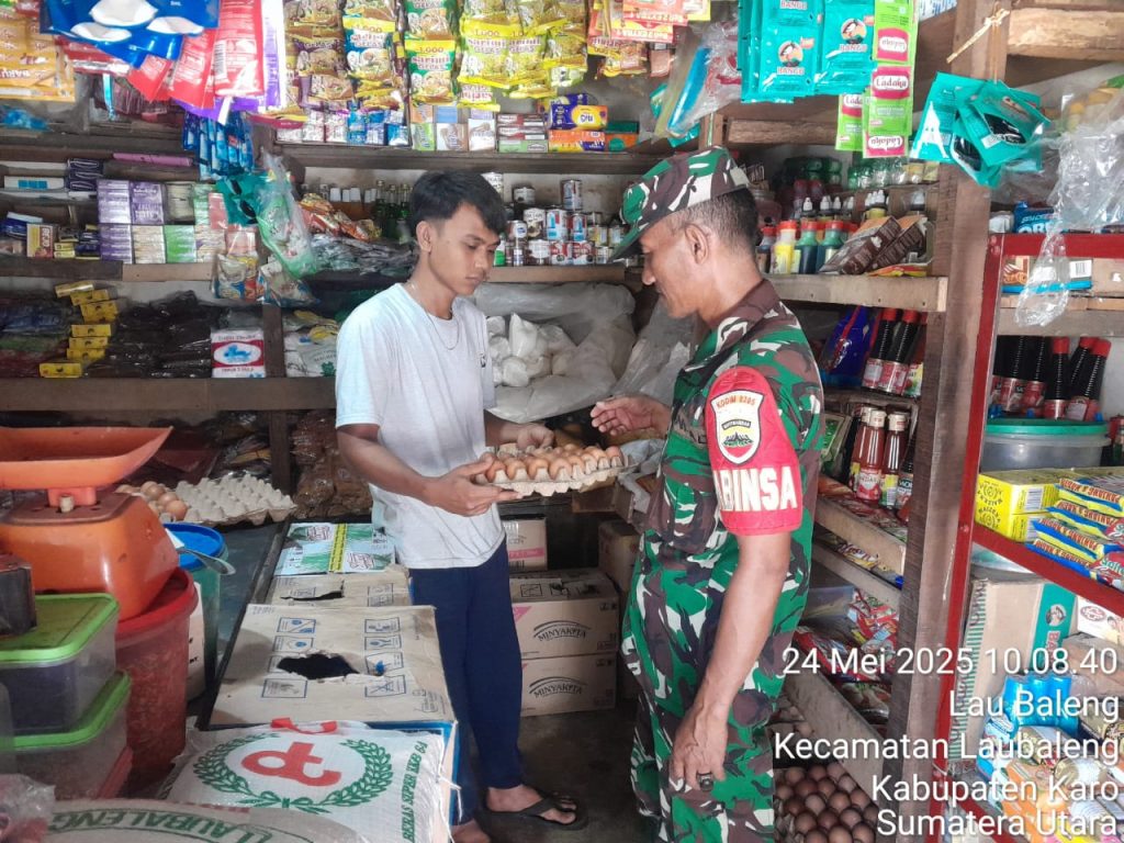 Tanah Karo. Sabtu 24/05/2025. Para Personel Koramil 09/Laubaleng jajaran Kodim 0205/Tanah Karo khususnya para Babinsa diperintahkan oleh Kapten Inf Gandhi N. Hartanto selaku Danramil agar tetap menjaga kondusifnya wilayah binaan terus dilaksanakan, termasuk juga mengecek harga dan ketersediaan Sembako (Sembilan Bahan Pokok) kebutuhan warga, kegiatanpun dilaksanakan dengan cara Komunikasi Sosial atau lebih dikenal Komsos bersilaturahmi menyapa warga, juga kegiatan ini untuk membantu kesulitan warga dalam pemenuhan kebutuhan Sembako serta sesuai perintah dari Komando Atas.
