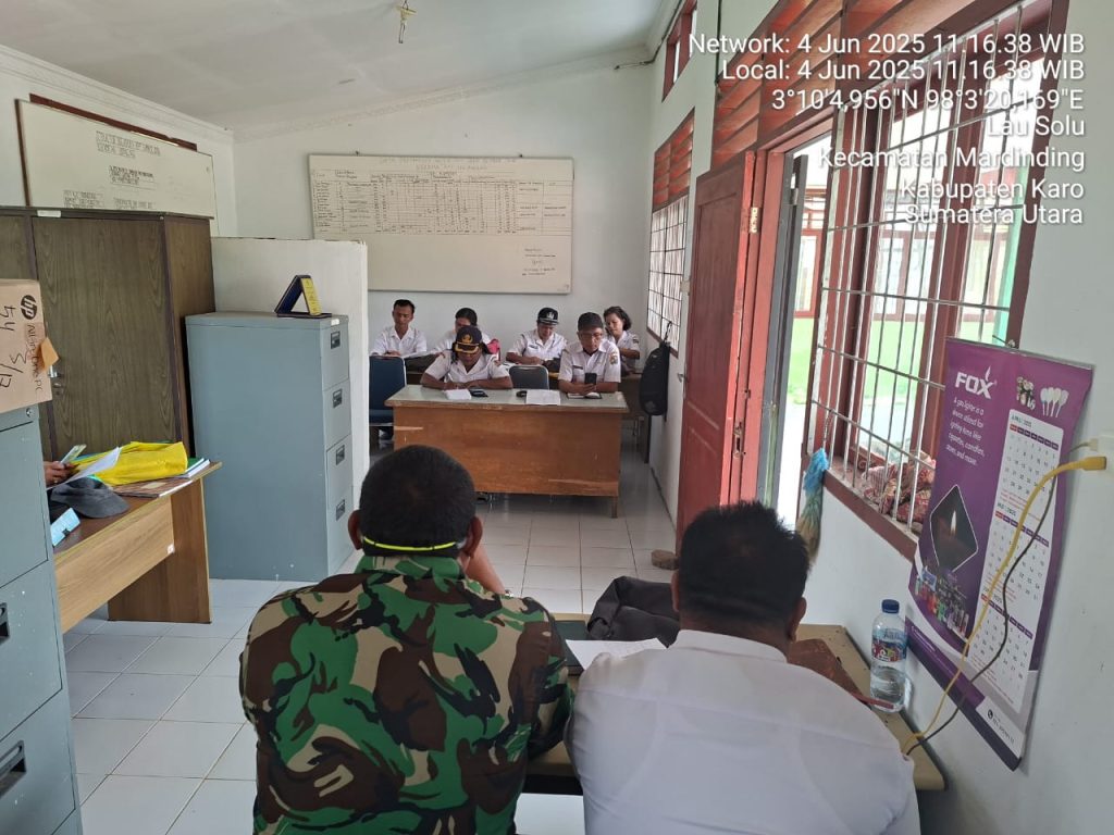 Tanah Karo. Rabu 04/06/2025. Danramil 09/Laubaleng Kodim 0205/TK Kapten Inf Gandhi N. Hartanto beserta Babinsa Serka M. Dian menghadiri kegiatan Rapat Koordinasi serta diskusi terkait bidang pertanian, bertempat di Kantor BPP (Balai Penyuluh Pertanian) Dinas Pertanian Kec. Laubaleng di Jalan Raketta Sembiring Brahmana Desa Buluh Pancur Kecamatan Laubaleng Kabupaten Karo-Sumatera Utara.