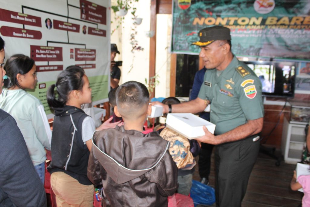 Tali asih berupa perlengkapan sekolah juga diberikan sebelum acara Nonton Bareng anak-anak Panti Asuhan Bunga, termasuk bingkisan kepada pihak panti. Kegiatan ini merupakan bagian dari rangkaian HUT Ke-75 Kodam I/Bukit Barisan yang diisi dengan berbagai kegiatan sosial sebagai bentuk nyata pengabdian TNI kepada Rakyat.