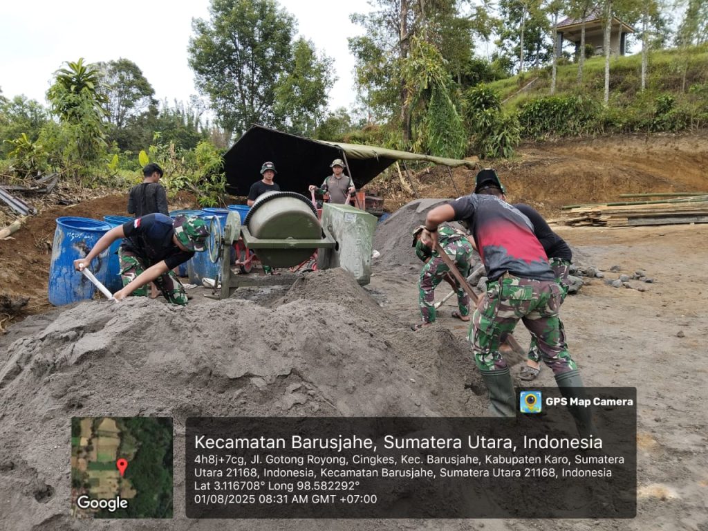 Barusjahe Karo. Jumat 1 Agustus 2025. Satgas TMMD (Satuan Tugas TNI Manunggal Membangun Desa) Ke-125 Tahun Anggaran 2025 Kodim 0205/Tanah Karo bersama masyarakat Desa Barusjahe mulai melaksanakan pembangunan sasaran fisik berupa parit gendong sepanjang 7 meter di yang terletak di sasaran fisik badan jalan merupakan titik strategis desa tersebut. Sasaran fisik tersebut berlokasi di Desa Barusjahe Kecamatan Barusjahe Kabupaten Karo Sumaterea Utara mulai dibangun hari ini (01/08) denga progress 10 persen.
