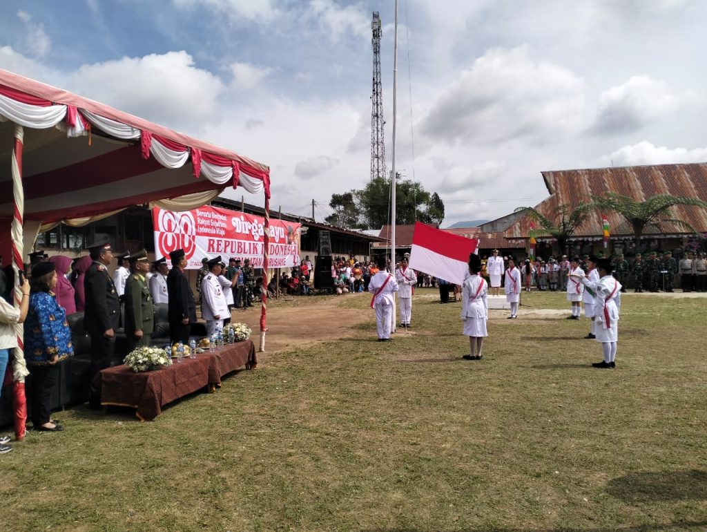 Barusjahe Karo. Minggu 17 Agustus 2025. Memperingati Hari Ulang Tahun ke-80 Kemerdekaan Republik Indonesia, Satuan Tugas TNI Manunggal Membangun Desa (Satgas TMMD) ke-125 Tahun Anggaran 2025 Kodim 0205/Tanah Karo dipimpin oleh Koordinator Lapangan Kapten Inf Johnson E. Sembiring Daramil 01/Barusjahe jajaran Kodim 0205/Tanah Karo, turut ambil bagian dalam pelaksanaan upacara detik-detik Proklamasi yang digelar secara khidmat di Lapangan SD Negeri Tigajumpa Jalan Pendidikan Desa Sukajulu, Kecamatan Barusjahe, Kabupaten Karo, Sumatera Utara, Sabtu (17/8/2025).