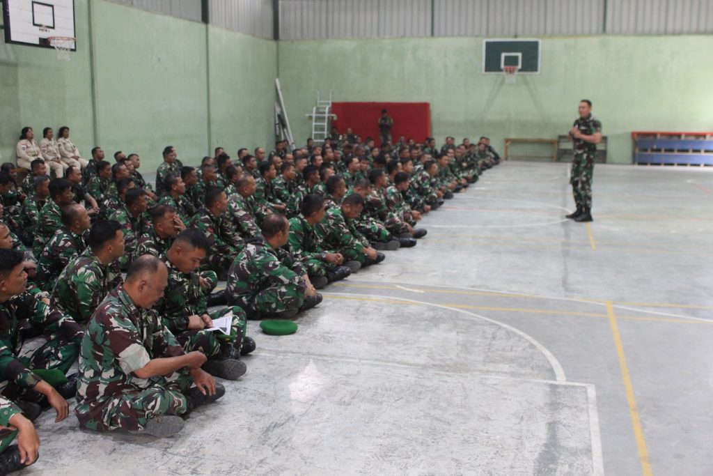 Letkol Inf Robert Panjaitan dalam arahannya, menekankan pentingnya disiplin, loyalitas, dan kepekaan terhadap perkembangan situasi terkini, khususnya yang berkaitan dengan kondisi sosial kemasyarakatan dan potensi gangguan keamanan wilayah. “Sebagai aparat kewilayahan, kita dituntut untuk peka dan sigap terhadap segala perkembangan situasi. Jangan lengah, tetap jaga netralitas dan kedekatan dengan masyarakat. Ingat, kita hadir untuk menjadi solusi di tengah rakyat. Juga kita bersinergi dengan Polri Kamtibmas untuk mendukung Pemerintah dalam menjalankan program-programnya” tegas Pak Dandim.