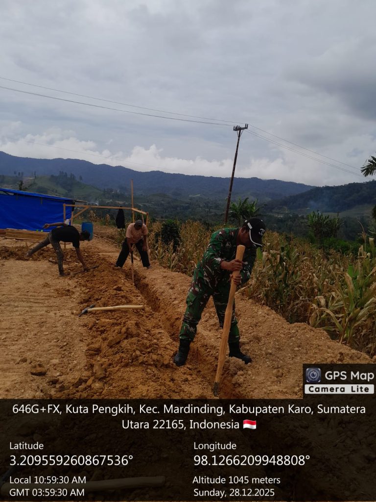 Mardingding, Karo. Senin 29 Desember 2025. Wujud nyata dukungan terhadap penguatan ekonomi kerakyatan dan pembangunan infrastruktur desa, personel Babinsa (Bintara Pembina Desa) dari Koramil (Komando Rayon Militer) 09/Laubaleng, Kodim 0205/Tanah Karo, Sertu Ramles Simbolon aktif mendampingi proses pembangunan gedung Koperasi Desa Kelurahan Merah Putih (KDKMP) di Desa Kuta Pengkih, Kecamatan Mardingding, Kabupaten Karo, Sumatera Utara.