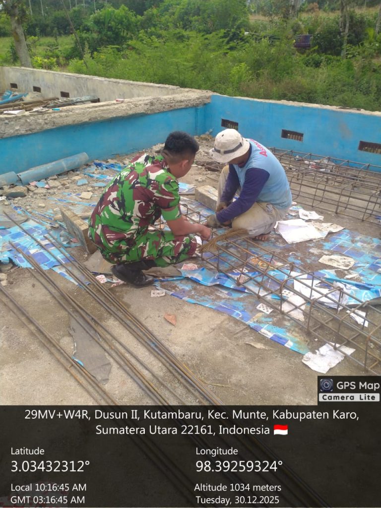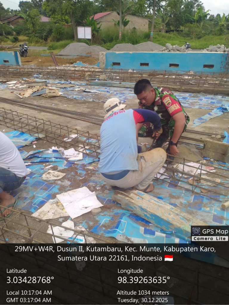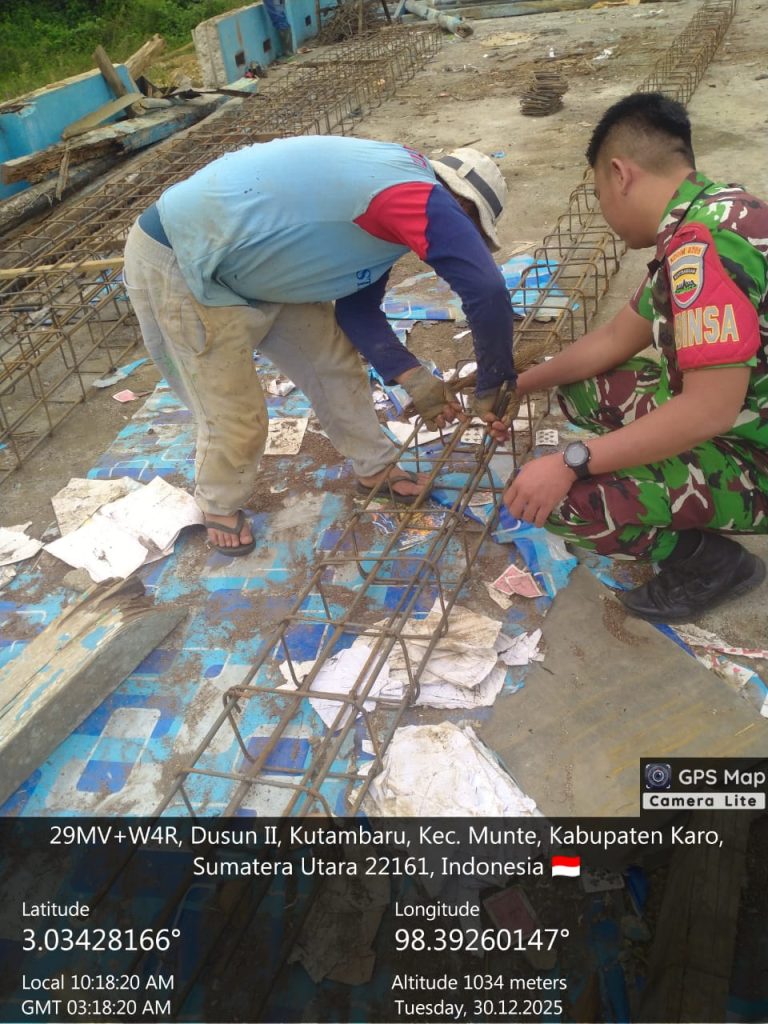 Munte, Karo. Selasa 30 Desember 2025. Tentara Nasional Indonesia (TNI) Angkatan Darat berkomitmen dalam mendukung percepatan pembangunan infrastruktur ekonomi di pedesaan kembali ditunjukkan. Kali ini, melalui Babinsa Koramil 06/Munte, Kodim 0205/Tanah Karo, Kopda Khairul Rizal Siregar, yang aktif hadir mendampingi proses pembangunan Koperasi Desa Kelurahan Merah Putih (KDKMP) di Desa Kutambaru, Kecamatan Munte, Kabupaten Karo, Sumatera Utara, sejak pagi hingga siang (30/12/2025).