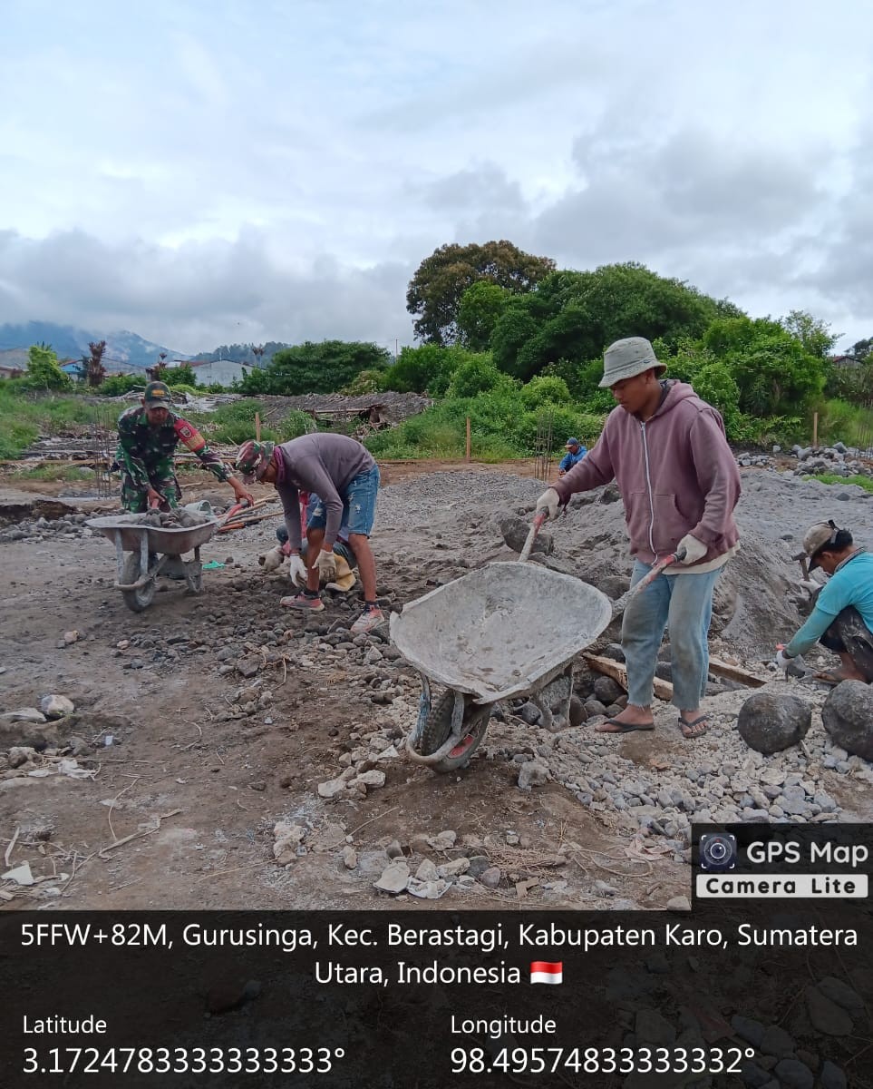 Lan jutnya lagi Serda Arif juga menambahkan bahwa “Semangat gotong royong masyarakat Desa Gurusingan dan Tukang Ahli patut diapresiasi karena mencerminkan kekompakan dan kepedulian terhadap kemajuan desa. Pada hari ini (02/01/2026) pembangun Gedung KDKMP Desa Gurusinga tahap pengecoran slop lantai dasar  dan pemasangan besi slop bawah, progres mencapai 9,77 persen, bangung berukuran 30 M x 20 M (600 M2) berdiri diatas lahan seluas 30 M x 20 M (600 M2), aset tanah milik Pemerintah Kabupaten Karo.