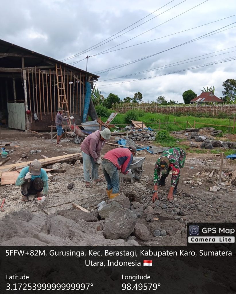Berastagi, Karo. Jumat 2 Januari 2026. Serda Arif Hidayat Bintara Pembina Desa (Babinsa) dari Koramil 03/Berastagi jajaran Kodim 0205/Tanah Karo, dalam upaya mendukung pembangunan fasilitas ekonomi masyarakat di wilayah binaannya, dirinya melaksanakan pendampingan dan pemantauan juga ikut serta dalam kegiatan pengecoran bangunan Gedung Koperasi Desa Kelurahan Merah Putih (KDKMP) yang berlokasi di Desa Kinnepen, Kecamatan Munte, Kabupaten Karo, Sumatera Utara sejak pagi hingga menjelang sore.