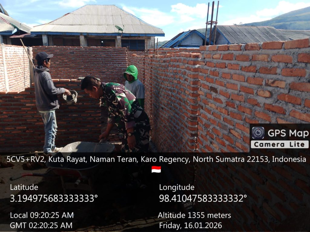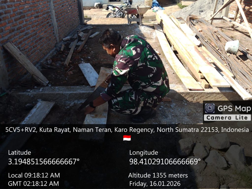 Naman Teran, Karo. Jumat 16 Januari 2026. Bintara Pembina Desa (Babinsa) Koramil 04/Simpang Empat jajaran Kodim 0205/Tanah Karo, Sertu Krino Utomo menunjukkan komitmennya dalam mendukung kesejahteraan masyarakat dengan mendampingi proses pembangunan Gedung Koperasi Desa Kelurahan Merah Putih (KDKMP) di Desa Sigarang-garang, Kecamatan Naman Teran, Kabupaten Karo, Sumatera Utara.