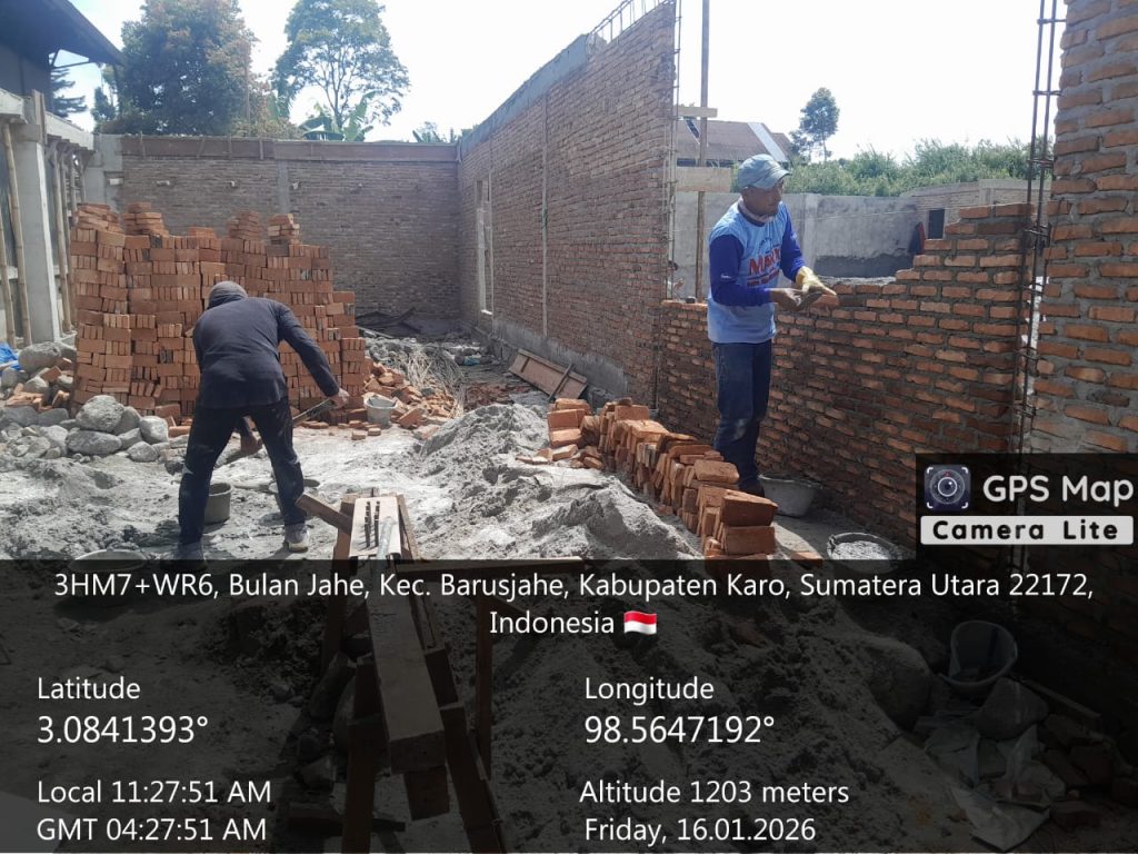 Barusjahe, Karo. Jumat 16 Januari 2026. Guna kelancaran pembangunan di wilayah binaan serta memastikan pelaksanaan program pemerintah di desa berjalan sesuai rencana, Bintara Pembina Desa (Babinsa) dari Koramil 01/Barusjahe jajaran Kodim 0205/Tanah Karo, Serka Anton Manurung terus melakukan pemantauan pembangunan Gedung Koperasi Desa Kelurahan Merah Putih (KDKMP) yang berlokasi di Desa Bulanjahe, Kecamatan Barusjahe, Kabupaten Karo, Sumatera Utara, mulai pagi hingga petang.