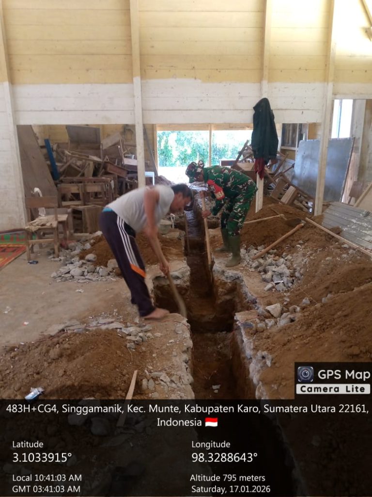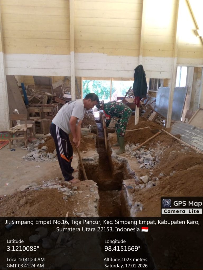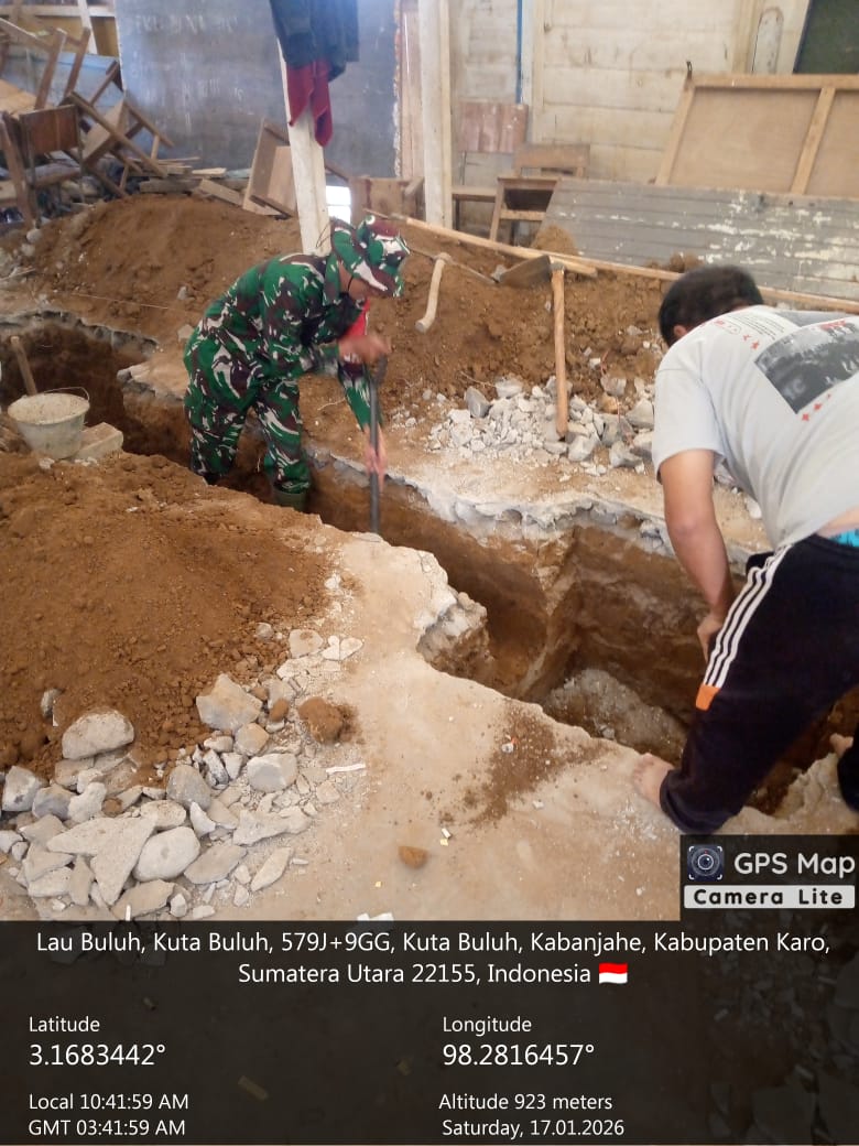 Kutabuluh, Karo. Sabtu 17 Januari 2025. Sinergitas antara TNI dan Masyarakat kembali ditunjukkan di wilayah teritorial Koramil 05/Payung jajaran Kodim 0205/Tanah Karo oleh Sertu Eka Suranta Sembiring Bintara Pembina Desa (Babinsa),  secara aktif mendampingi warga dan tukang ahli dalam pengerjaan penggalian pondasi Gedung Koperasi Desa Kelurahah Merah Putih (KDKMP) di Desa Jinabun, Kecamatan Kutabuluh, Kabupaten Karo.