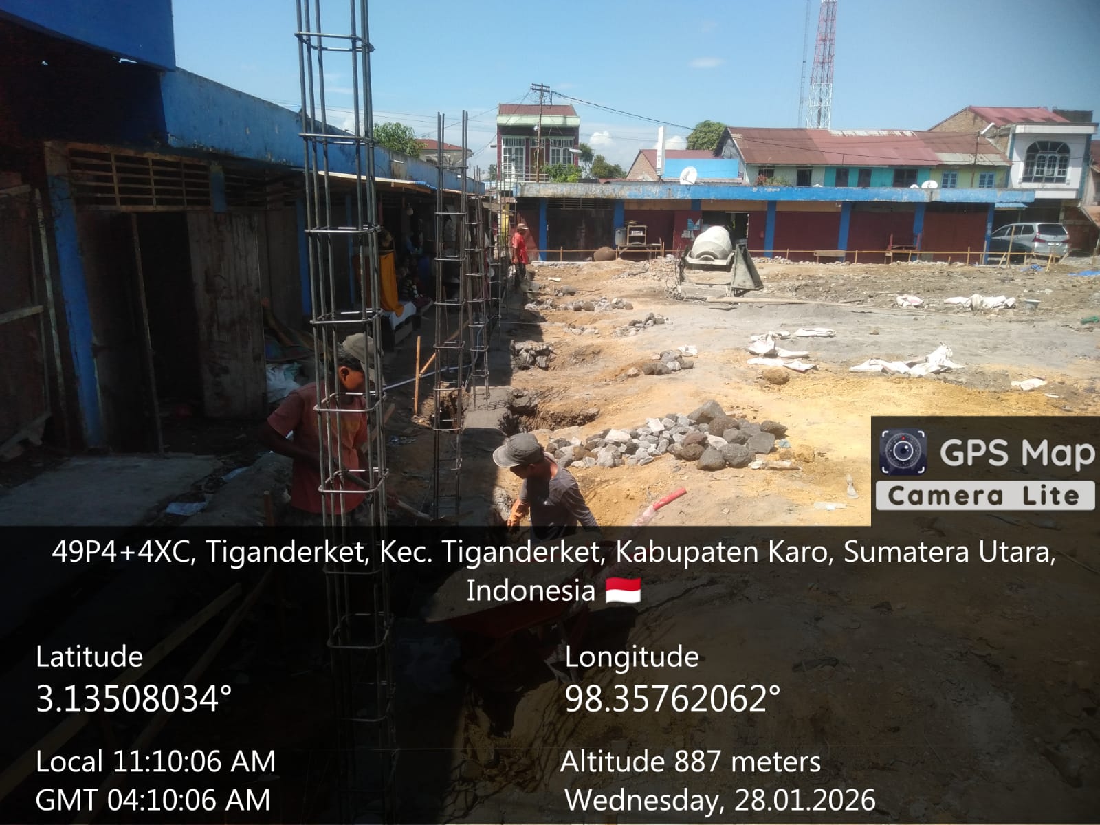Gedung Koperasi Desa Kelurahan Desa Tiganderket dibangun berukuran 30 Meter x 20 Meter (600 Meter²) diatas lahan seluas 23 Meter X 27 Meter (851 Meter²), aset tanah milik Pemerintah Desa Tiganderket, saat ini pembangungan pada tahap pemasangan besi tiang cor, pada siang ini (28/01/2026) progres baru mencapai 1,03 persen. Pengejaan secara gotong royong oleh maysrakat desa dan tukang ahli bangunan. (Bayu W. Gatubima_Pendim 0205/TK)
