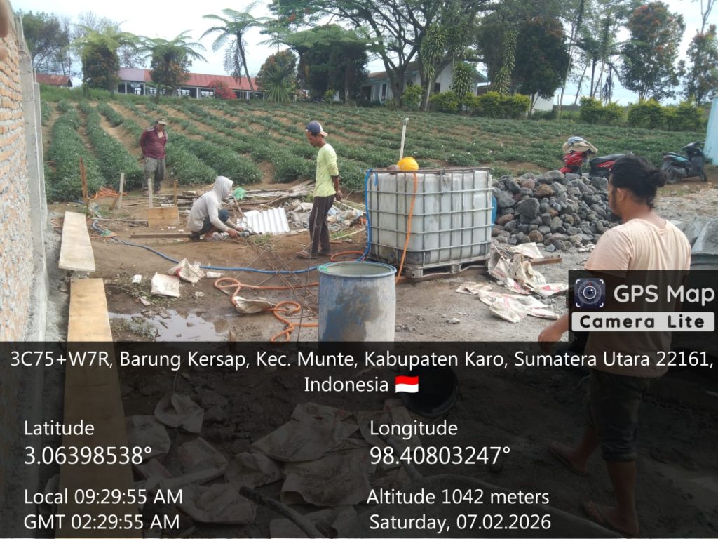 Munte, Karo. Sabtu 07 Februari 2026. Guna mendukung peningkatan kesejahteraan ekonomi masyarakat di wilayah binaan, Bintara Pembina Desa (Babinsa) dari Koramil 06/Munte jajaran Kodim 0205/Tanah Karo, Serma Suleman  Tarigan melaksanakan kegiatan Komsos (Komunikasi Sosial) sekaligus mengawal proyek pembangunan gedung  Koperasi Desa Kelurahan Merah Putih di Desa Barusngkersap, Kecamatan Munte, Kabupaten Karo, Sumatera Utara sejak pagi hingga petang.