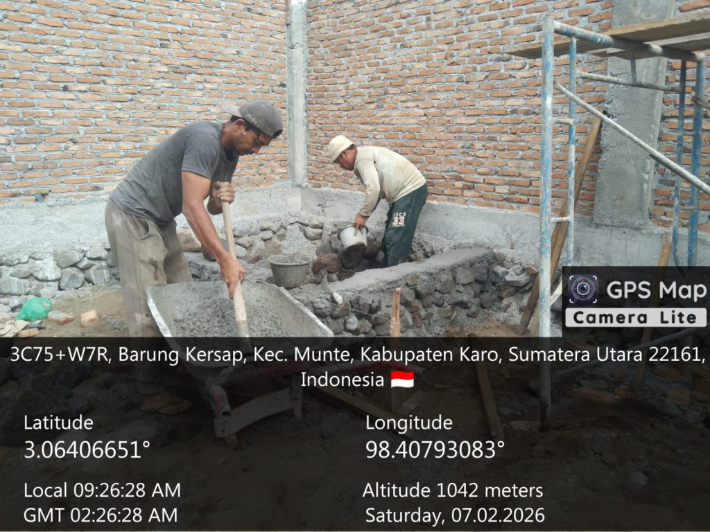 Dok Koramil 06/Munte Kodim 0205/TK 07022026, Babinsa kawal pembangunan gedung KDKMP Desa Barungkersap Kec. Munte Kab. Karo