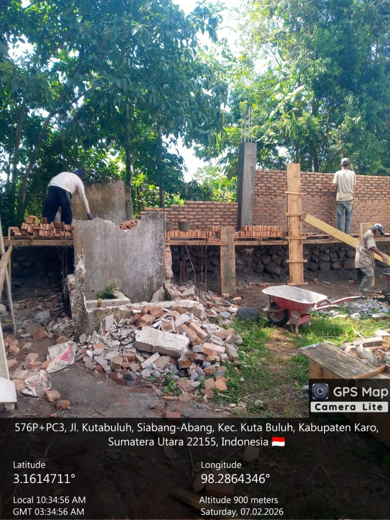 Hari ini (07/02/2026) pembanguan gedung Koperasi Desa Kelurahan Merah Putih Desa Jinabun pada tahap melaksanakan pemasangan batu bata dinding, progres 12,43 %, bangunan berukuran  30 Meter x 20 Meter (600 Meter²), dibangun atas lahan seluas 27 Meter x 45 Meter (1,215 Meter² ), aset tanah milik Dinas Pendidikan Kab. Karo