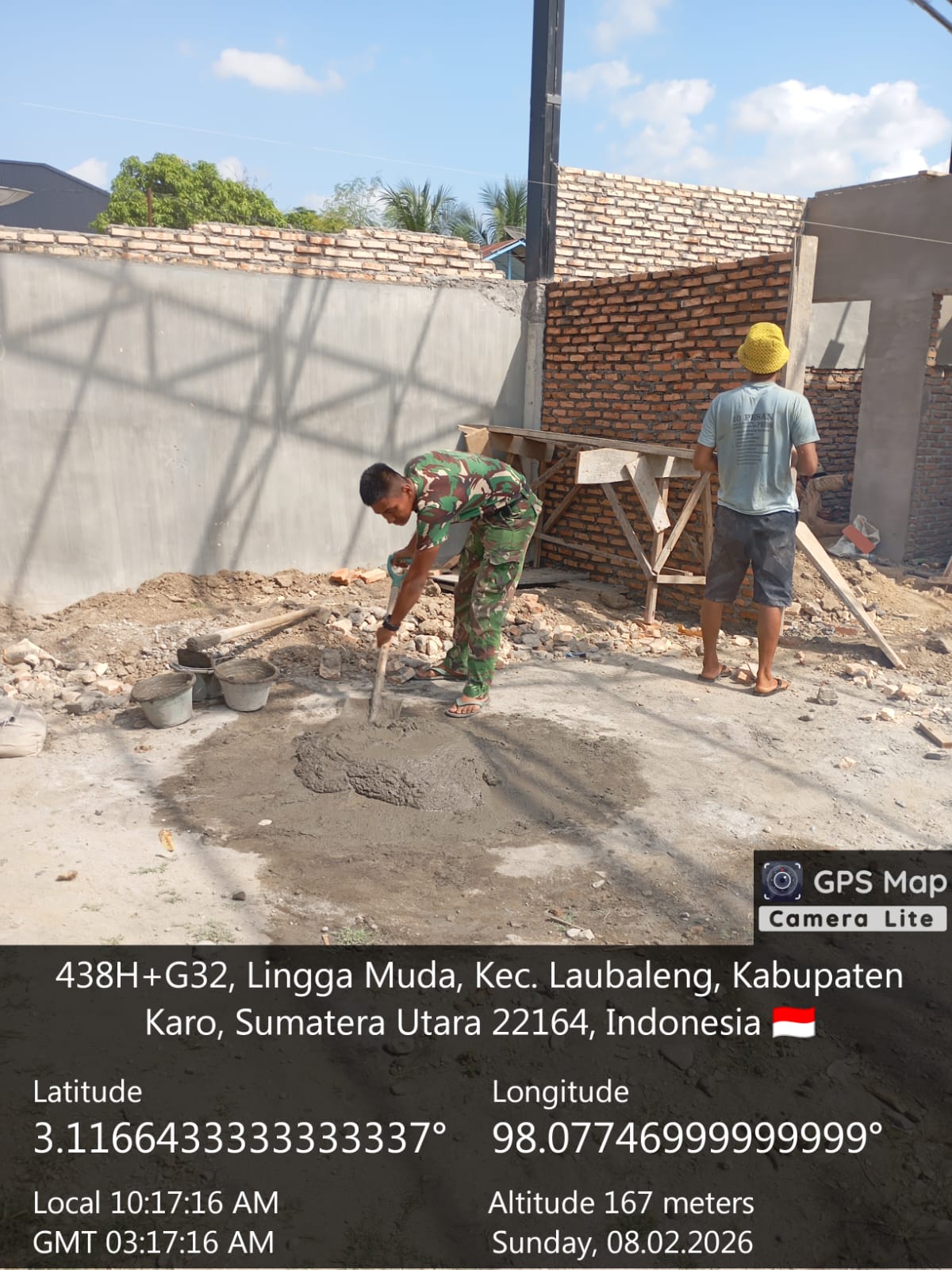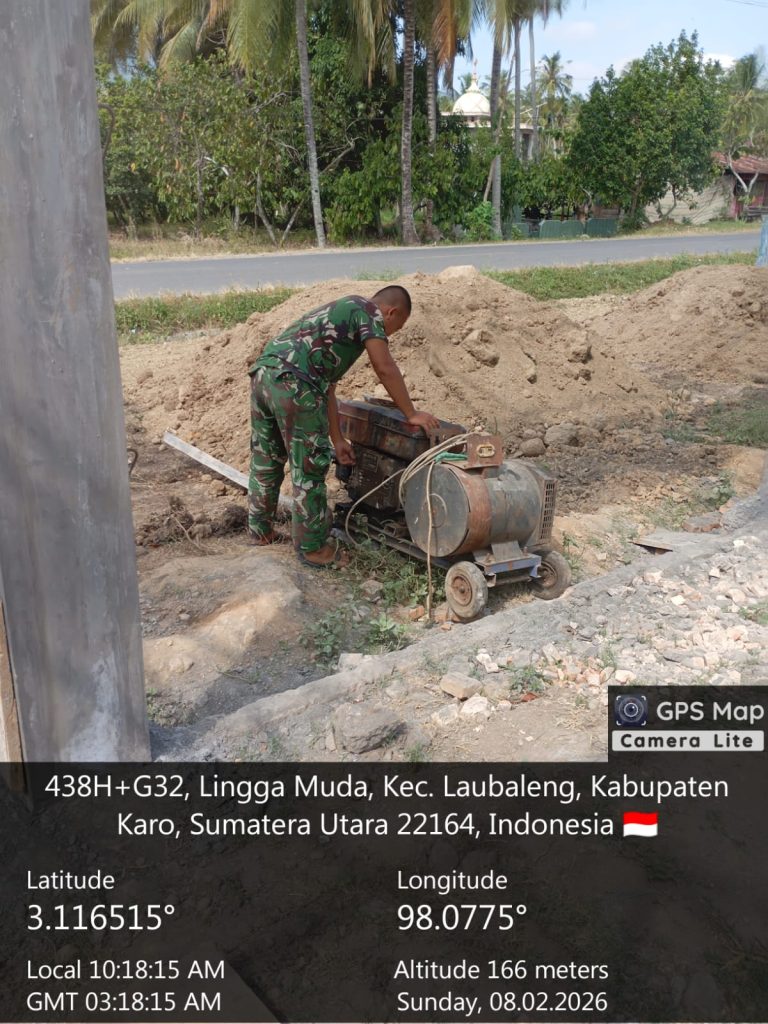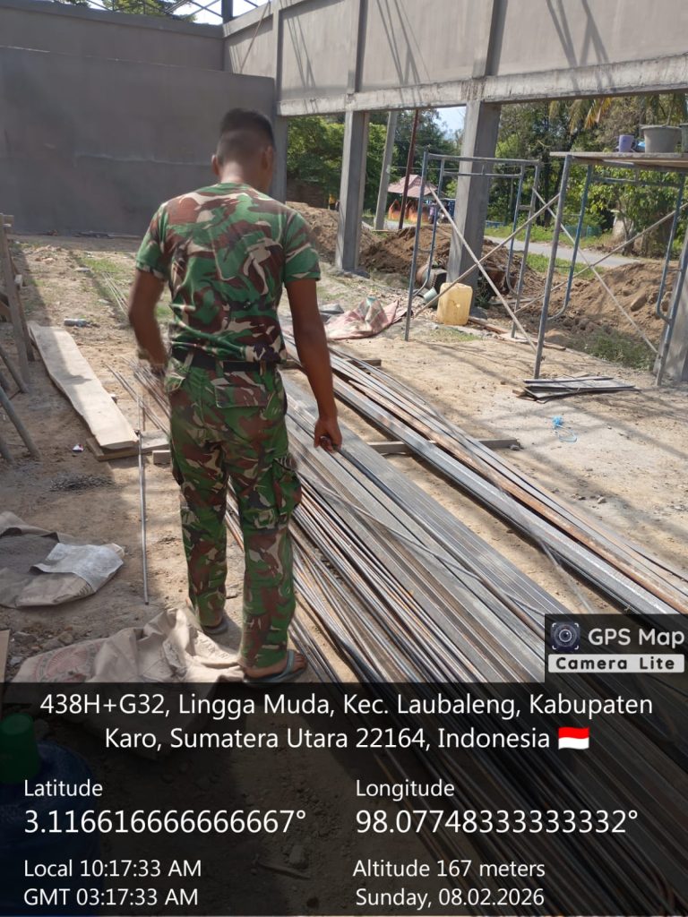 Laubaleng, Karo. Minggu 08 Februari 2026. Program Pemerintah Pusar dalam pembangunan ekonomi desa kembali mendapat dukungan penuh dari aparat kewilayahan. Babinsa (Bintara Pembina Desa) dari Koramil 09/Laubaleng jajaran Kodim 0205/Tanah Karo untuk Desa Lingga Muda Sertu Rangkit Panjaitan, terus mengawal proyek pembangunan gedung Koperasi Desa Kelurahan Merah Putih (KDKMP) yang berlokasi di Desa Lingga Muda, Kecamatan Laubaleng, Kabupaten Karo, Sumatera Utara.