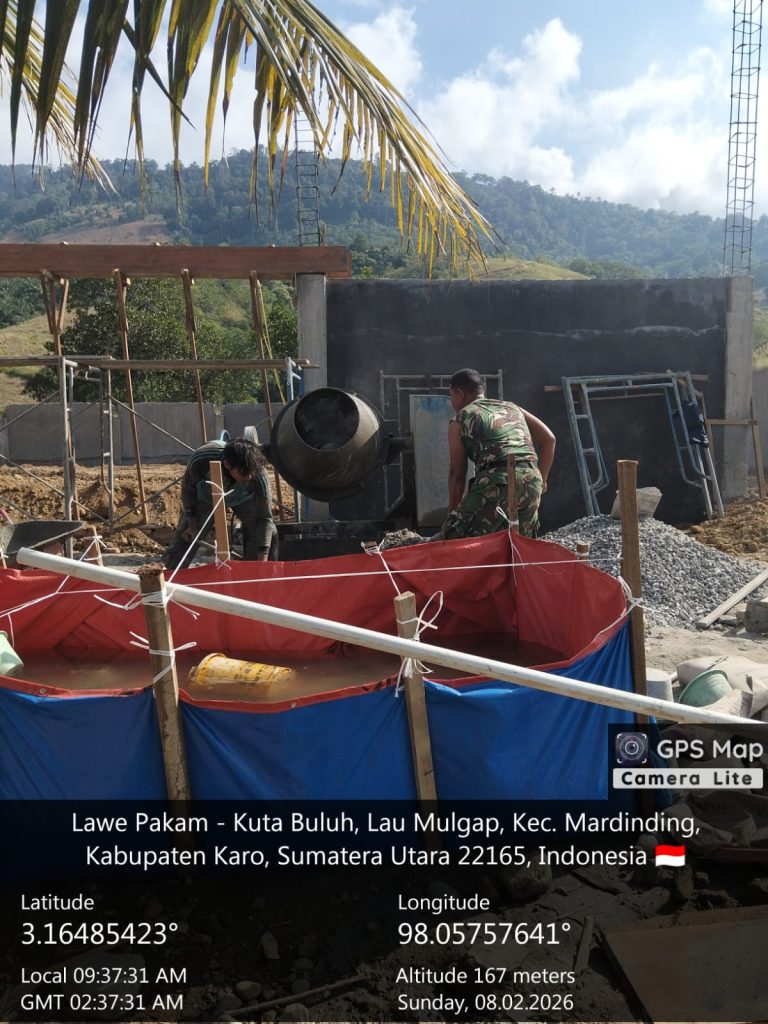 Laubaleng, Karo. Minggu 08 Februari 2026. Peningkatan kesejahteraan masyarakat desa terus didorong melalui pembangunan sarana ekonomi kerakyatan. Babinsa (Bintara Pembina Desa) dari Koramil 09/Laubaleng jajaran Kodim 0205/Tanah Karo untuk Desa Pernantin, Serma Eddy Alim Ginting melaksanakan pengawalan berupa pendampingan dan pemantauan pada proyek pembangunan gedung Kantor Koperasi Desa Merah Putih (KDKMP) yang berlokasi di Desa Buluh Pancur, Kecamatan Laubaleng, Kabupaten Karo, Sumatera Utara.