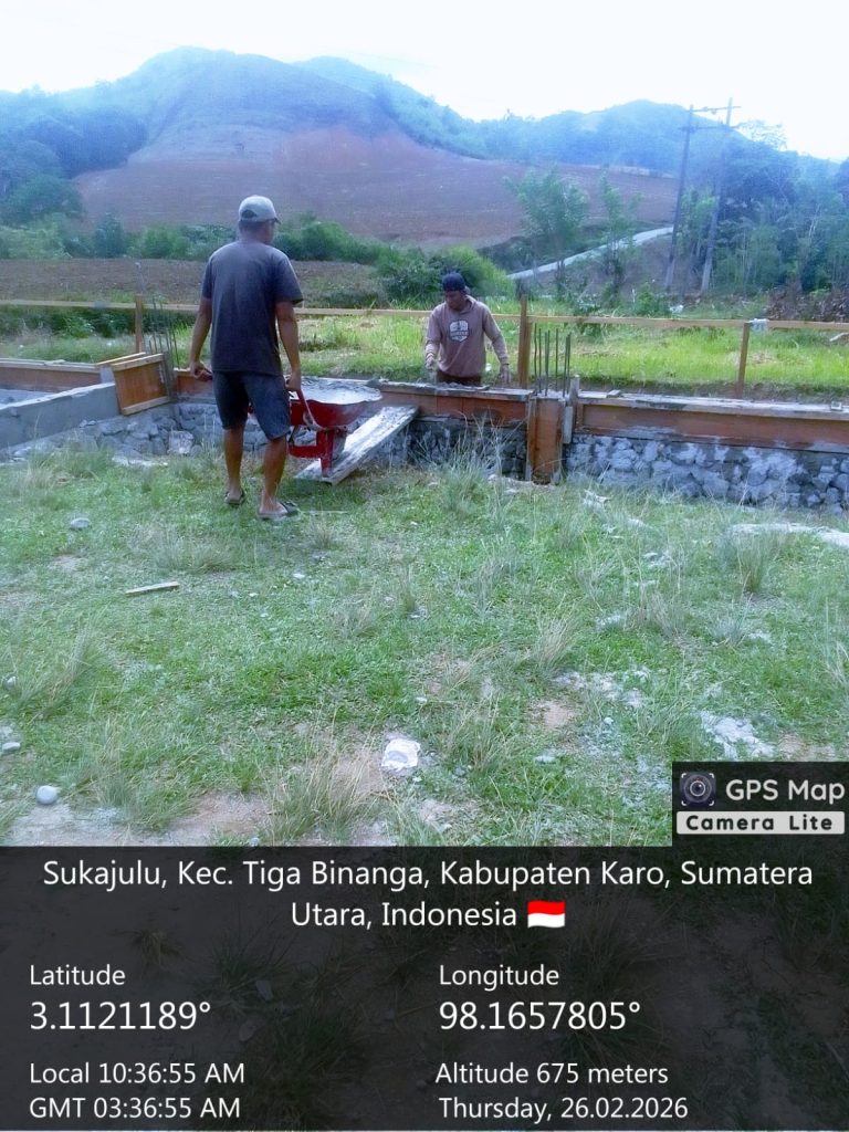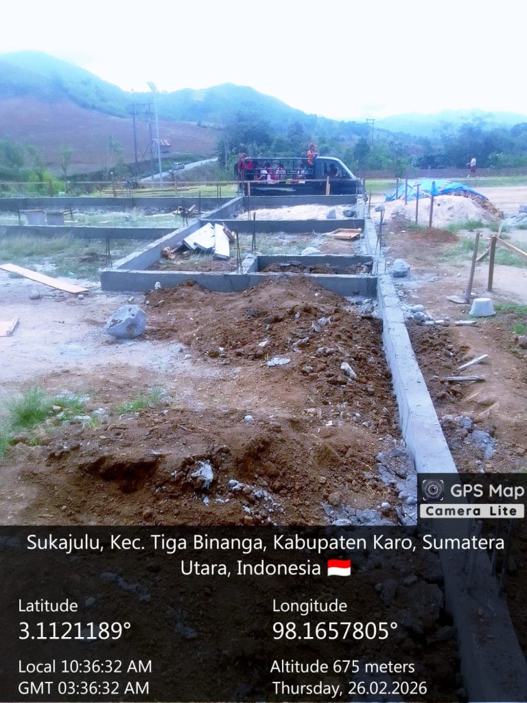 Gedung Koperasi Desa Kelurahan Merah Putih Desa Kutambaru Punti berukuran 30 Meter X 20 Meter (600 Meter²), diatas lahan seluas 32 Meter X 24 Meter (768 Meter²), aset tanah milik Pendidikan Kabupaten Karo, pada hari ini (26/02/2026) pembangun di tahap pengecoran selop selop 15 x 25, progres 13,29 persen. (Bayu W. Gatubima_Pendim 0205/TK)