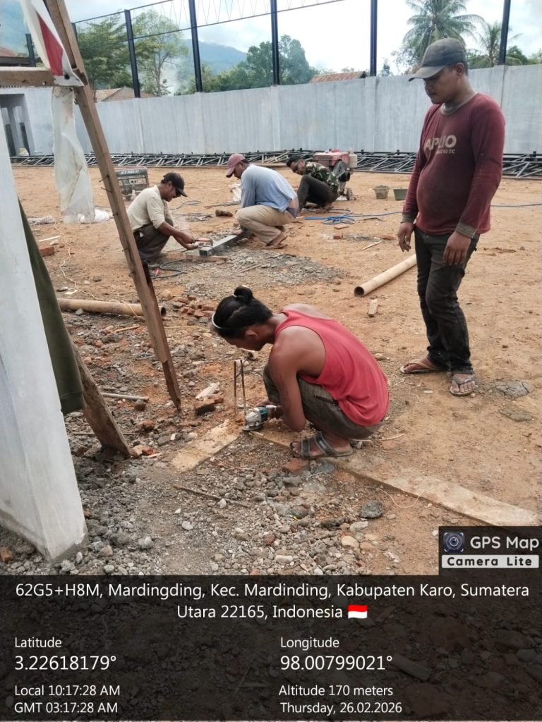 Mardingding, Karo. Kamis 26 Februari 2026. Serda Anco Leody Manurung Babinsa (Bintara Pembina Desa) dari Koramil 09/Laubaleng jajaran Kodim 0205/Tanah Karo melaksanakan pengawalan berupa pendampingan dan pemantauan pembangunan gedung Koperasi Desa Kelurahan Merah Putih (KDKMP) yang berlokasi di Desa Mardingding, Kecamatan Mardingding, Kabupaten Karo, Sumatera Utara.
