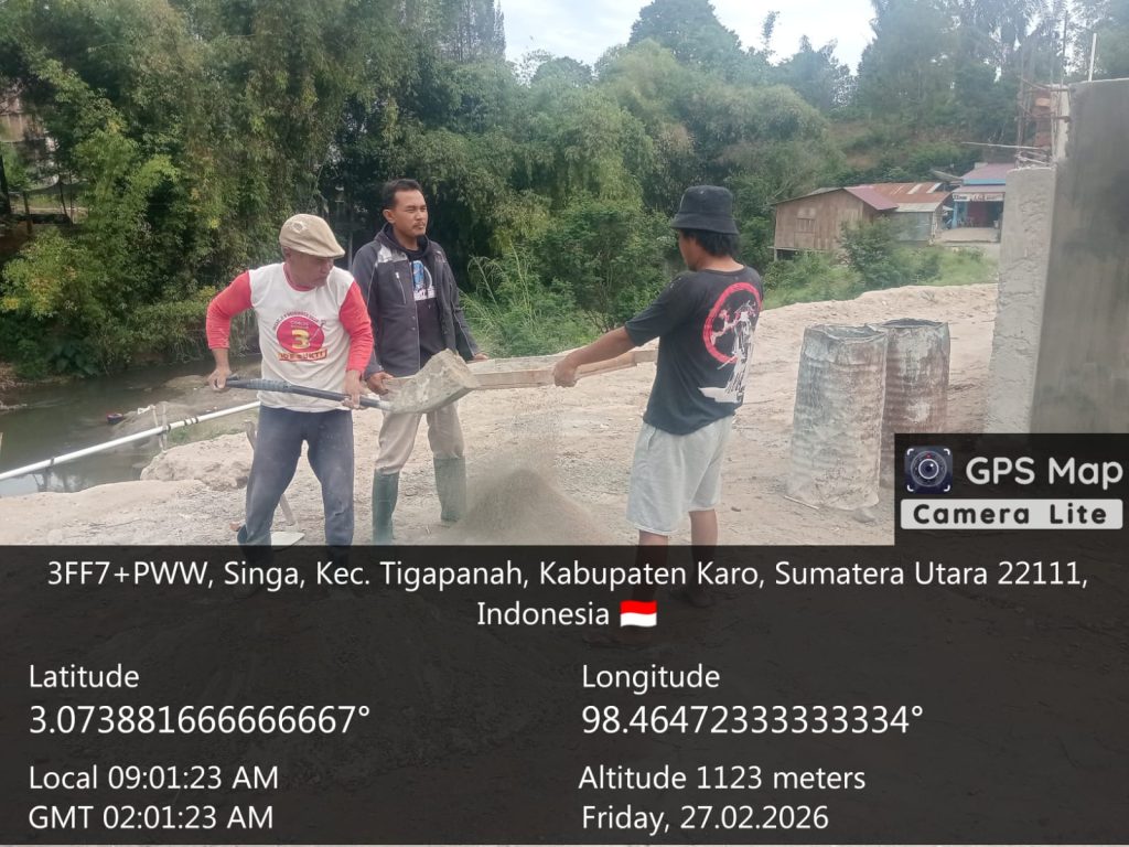 Tigapanah, Karo. Jumat 27 Februari 2026. Untuk mendukung percepatan pembangunan infrastruktur penunjang ekonomi masyarakat desa, Sertu Titus Tarigan Babinsa dari Koramil 02/Tigapanah jajaran Kodim 0205/Tanah Karo, aktif melaksanakan Komunikasi Sosial (Komsos) sekaligus mengawal proyek pembangunan gedung Koperasi Desa Kelurahan Merah Putih (KDKMP) yang berlokasi di wilayah binaannya, Desa Singa, Kecamatan Tiganderket, Kabupaten Karo, Sumatera Utara.