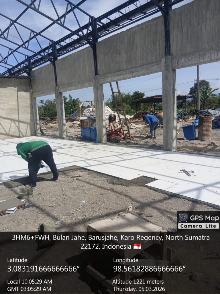 Pembangunan gedung KDKMP Desa Bulanjahe, saat ini pada tahap pemasangan kramik lantai dan finising rangka baja, progres 64,46 % pada hari ini (05/03/2026). bangunan berukuran 30 Meter x 20 Meter (600 Meter²), diatas lahan seluas lahan 50 Meter x 60 Meter (3.000 Meter²), status tanah aset milik Koperasi Provinsi Sumatera Utara.