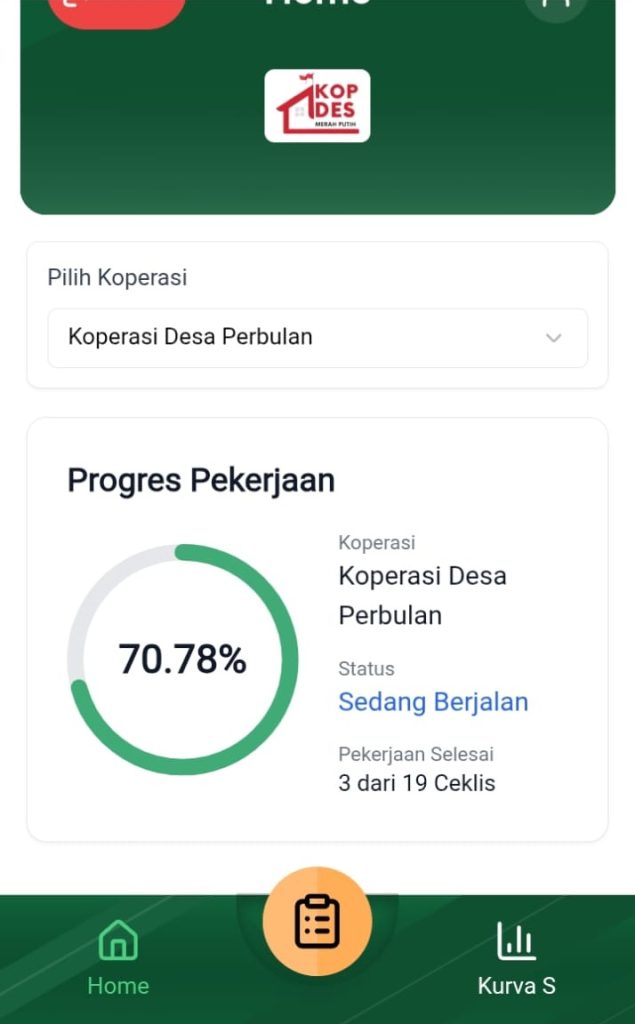Pada pagi hari ini (13/03/2026) pembangunan fisik gedung KDKMP Desa Perbulan pada tahap proses pemasangan pintu kaca, pemasangan atap atas dan pemasangan keramik, progres mencapai 70.78 %, bangunan berukuran 30 Meter X 20 Meter (600 Meter²), bangunan berdiri diatas tanah seluas 30 Meter X 25 Meter (750 Meter), aset milik Dinas Pendidikan Kabupaten Karo.