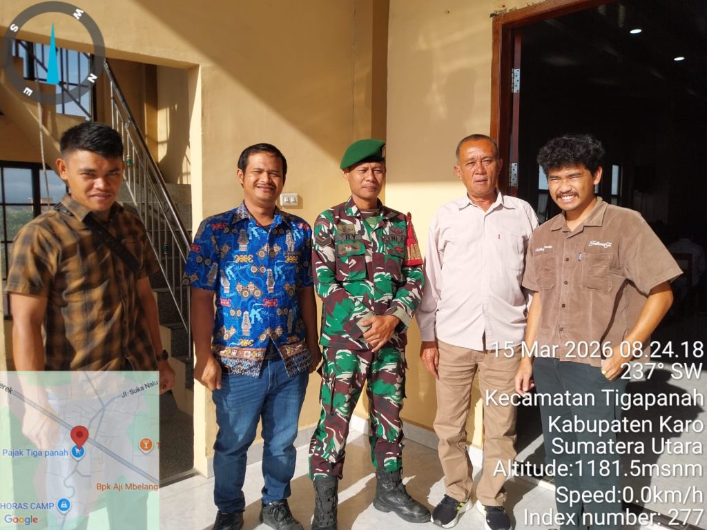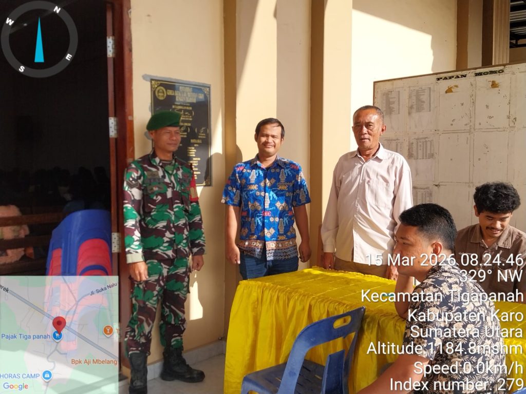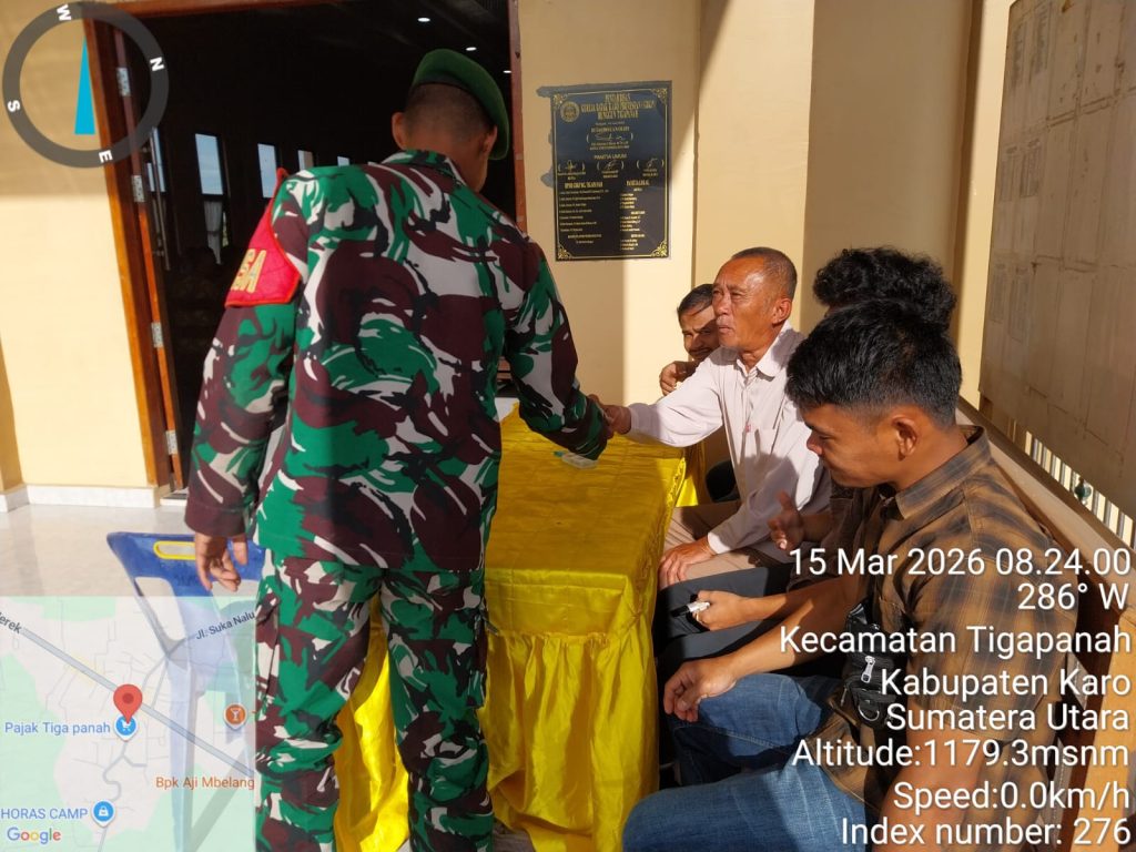 Tigapanah, Karo. Minggu 15 Maret 2026. Sertu Try Handriansyah, Bintara Pembina Desa (Babinsa) dari Koramil 02/Tigapanah jajaran Kodim 0205/Tanah Karo, di wilayah binaan menjalin Komsos (Komunikasi Sosial) untuk menjaga hubungan baik dengan warga serta monitoring perkebangan situasi wilayah. Babinsa juga sekaligus melakukan Komsos di Gereja dan membantu Pengamanan Ibadah Kebaktian Minggu secara bersinergi bersama Diakoni sejak pagi hingga menjelang siang hari ini (15/03/2026)