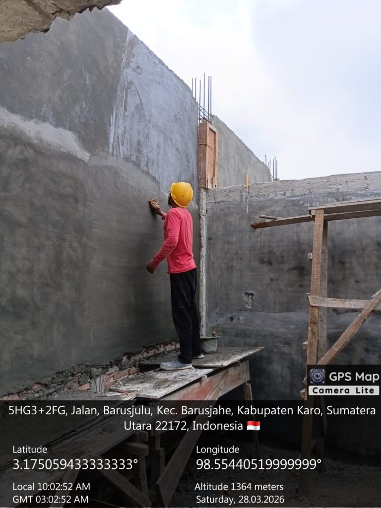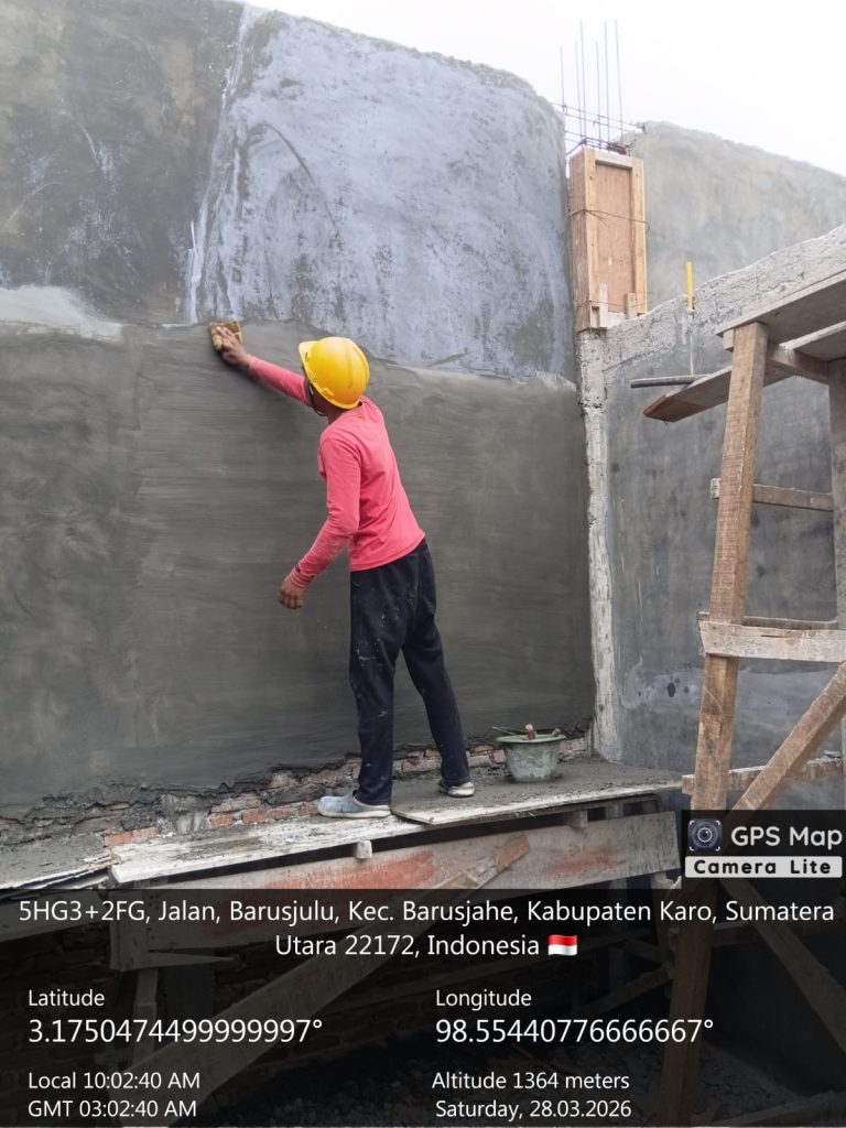 Progres pembangunan pada hari ini (28/03/2026) baru mencapai 25.17 persen, bangunan berukuran 30 Meter x 20 Meter (600 Meter²), berdiri diatas lahan seluas seluas 30 Meter X  40 meter (1.200 Meter²) aset tanah milik Dinas Pendidikan Kabupaten Karo, pekerjaan ditahan pelsteran dinding.