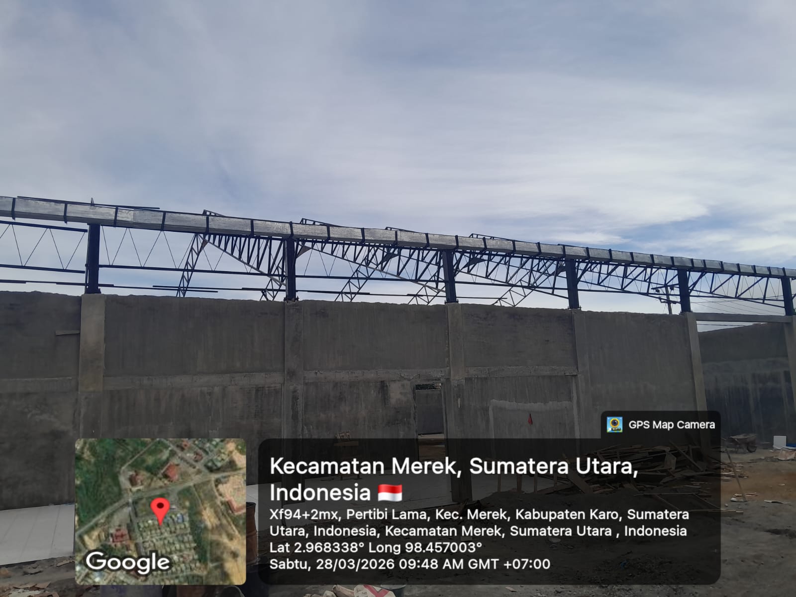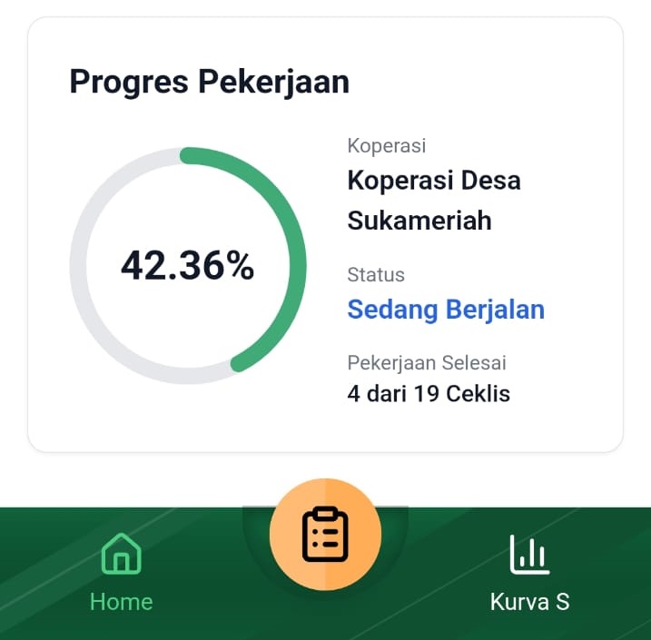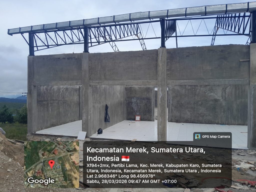 Perkembangan proyek pembanguna gedung KDKMP Desa Sukameriah Tigapanah pada hari ini (28/03/2026) di tahap pemasangan kuda-kuda atas dan pemasangan keramik lantai, sedangkan progres mencapai 42,36 persen, kemudian ukuran bangunan 30 Meter x 20 Meter (600 Meter²), berdiri atas lahan seluas 40 Meter X 25 Meter (1.000 Meter²), aset milik Koperasi Unit Desa Sukameriah.