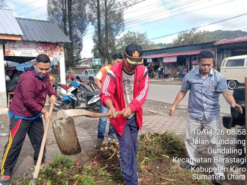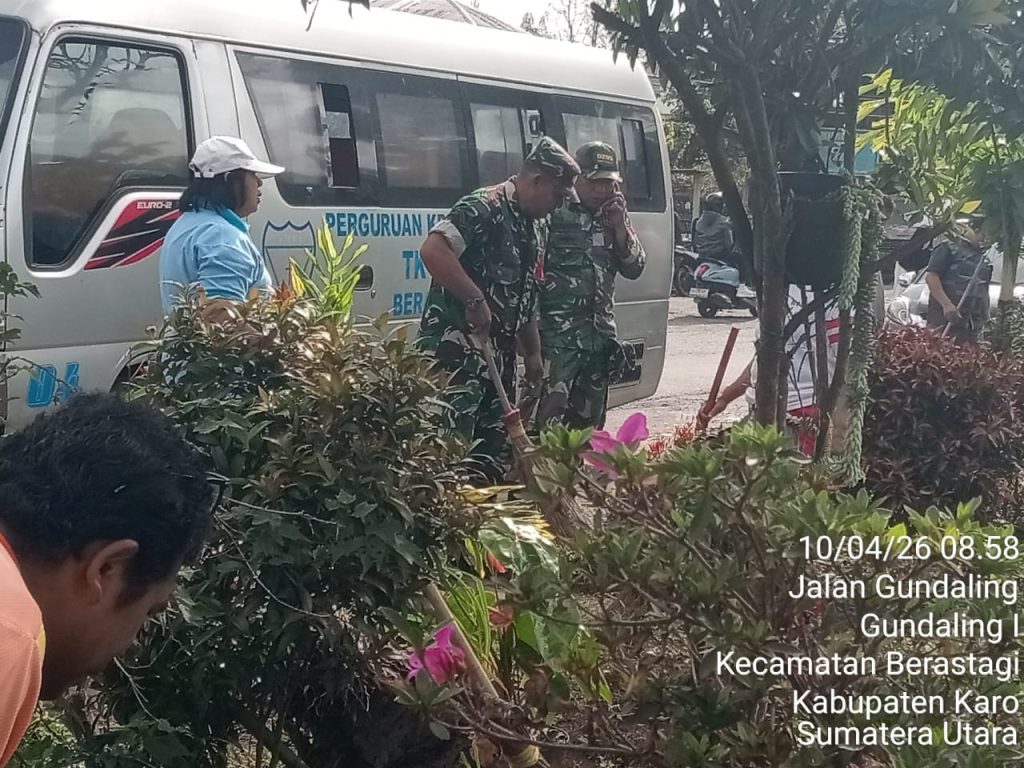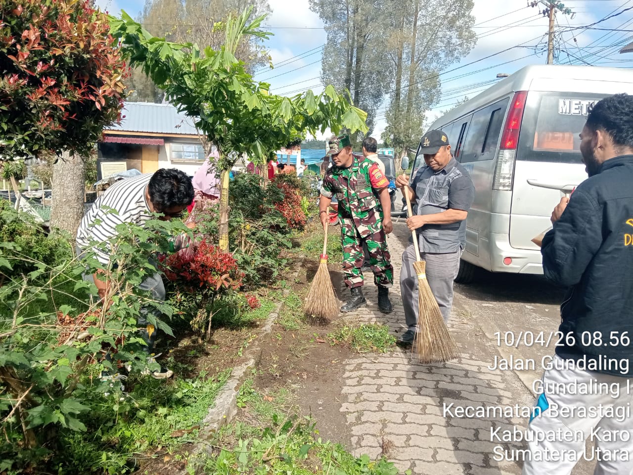 Merdeka, Karo. Jumat 10 April 2026. Semangat Kebersamaan dan Kemanunggalan TNI dengan Rakyat terus dipelihara oleh personel Koramil 04/Simpang Empat, Kodim 0205/TK. Hal ini terlihat saat para Babinsanya yaitu Serma Nicolas Hasibuan dan Serda Agus Supriadi terjun langsung membaur bersama masyarakat dalam aksi gotong royong membersihkan lingkungan di Desa Gongsol, Kecamatan Merdeka, Kabupaten Karo, Sumatera Utara.