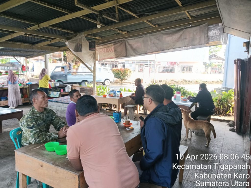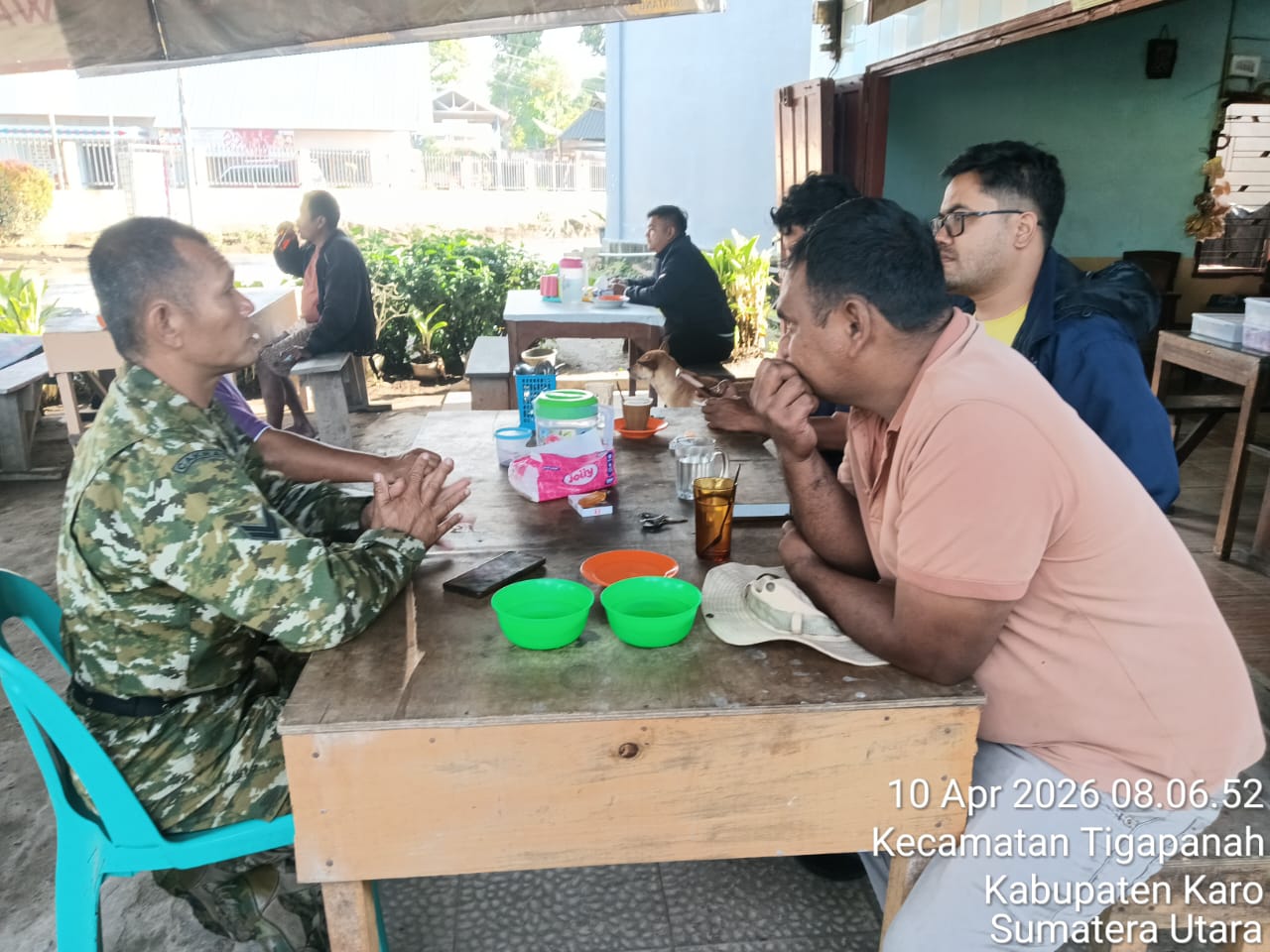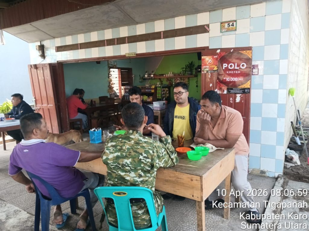 Tigapanah, Karo. Jumat 10 April 2026. Untuk mempererat hubungan silaturahmi dengan masyarakat serta menjaga situasi keamanan dan ketertiban di wilayah binaan, Sertu Titus Tarigan Bintara Pembina Desa (Babinsa) dari Koramil 02/Tigapanah jajaran Kodim 0205/Tanah Karo melaksanakan kegiatan Komunikasi Sosial (Komsos) bersilaturami bersama warga di Kedai Kopi milik Ibu Dewi Beru Tarigan di Jalan Sukanalu Desa Tigapanah, Kecamatan Tigapanah, Kabupaten Karo, Sumatera Utara.