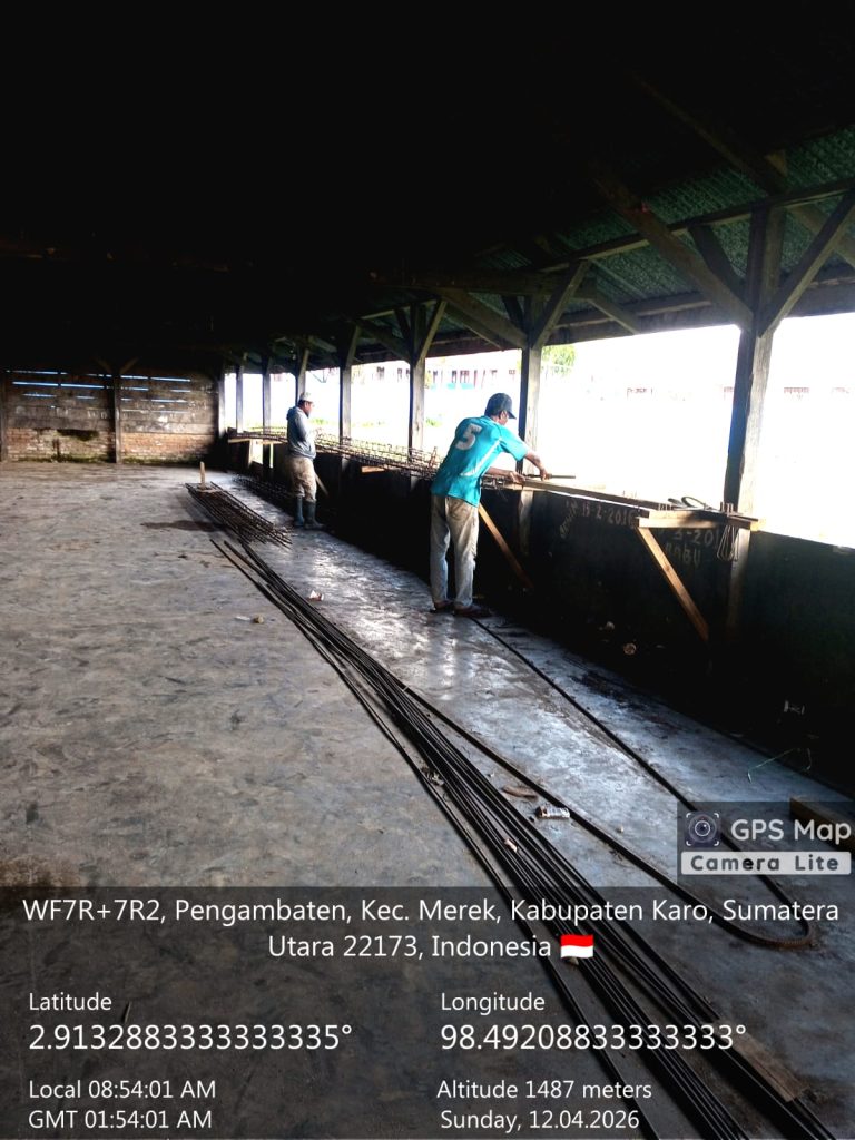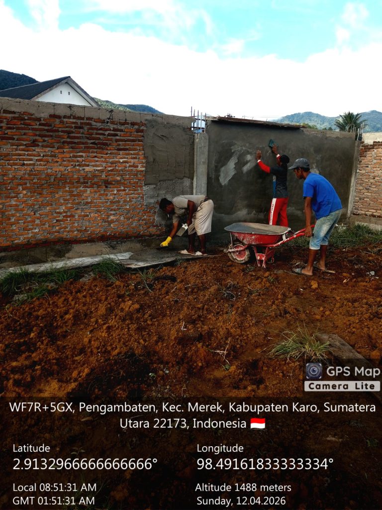 Berastagi, Karo. Minggu 12 April 2026. Bintara pembina Desa (Babinsa) dari Koramil 02/Tigapanah jajaran Kodim 0205/Tanah Karo, Pelda Justiaman Lingga, melaksanakan pendampingan Program Pemerintah Pusat untuk Masyarakat Desa yaitu pembangunan Gedung Koperasi Desa Kelurahan Merah Putih (KDKMP) yang berlokasi di Desa Pangamabatan, Kecamatan Merek, Kabupaten Karo, Sumatera Utara.