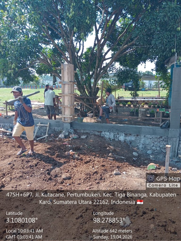 Sedangkan progres tahap awal pada hari ini (19/04/2026) baru mencapai 3,65 persen, ukuran bangunan seluas 30 Meter X 20 Meter (600 Meter Persegi), bangunan berdiri diatas lahan seluas 20 Meter X 31 Meter (620 Meter Persegi), aset tanah milik Dinas Pendidikan Kabupaten Karo.