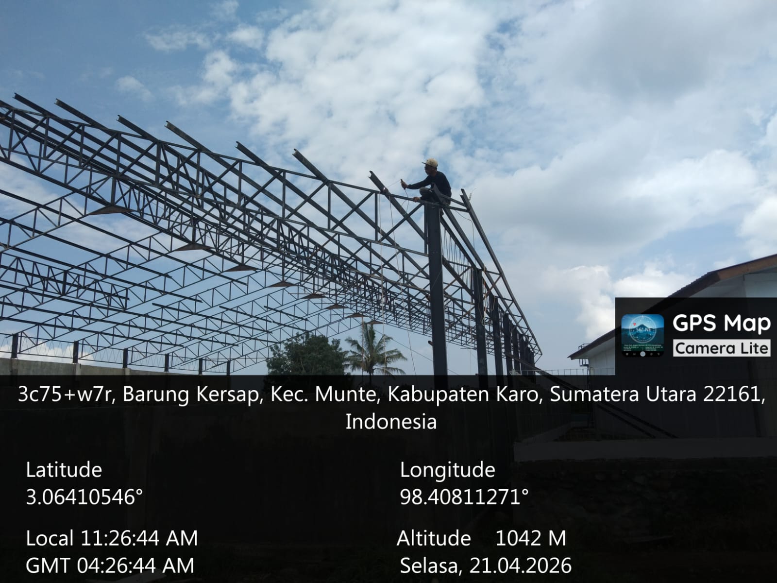 Dok Koramil 06/Munte Kodim 0205/TK 21042026, Babinsa pantau dan dampingi pembangunan gedung KDKMP Desa Barungkersap Kec. Munte Kab. Karo
