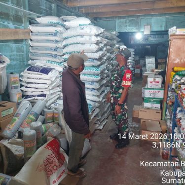 Babinsa Koramil 01/Barusjahe Komsos Sambil Monitoring Harga dan Stok Pupuk di Toko Pertanian Barusjahe, Karo. Sabtu 14 Maret 2026. Guna mendukung suksesnya...